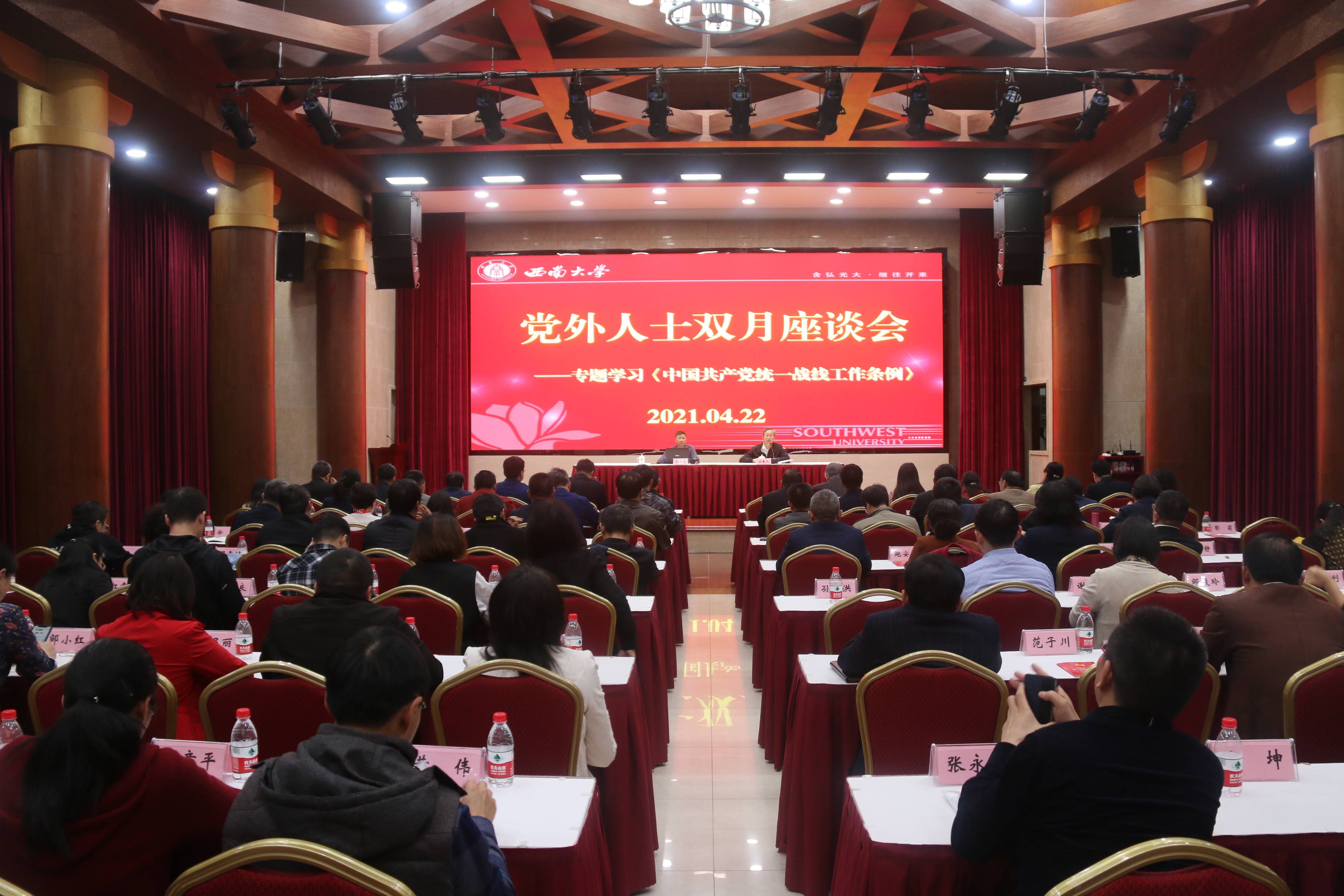 4月22日下午,学校召开党外人士双月座谈会,专题学习《中国共产党统一战线工作条例》(以下简称《条例》),会议由学校党委副书记、党委统战部部长安春元主持。学校各级人大代表、政协委员中的党外人士,各民主党派支部(社)副主委以上干部,各级统战团体负责人,党委统战部负责人等参加学习。