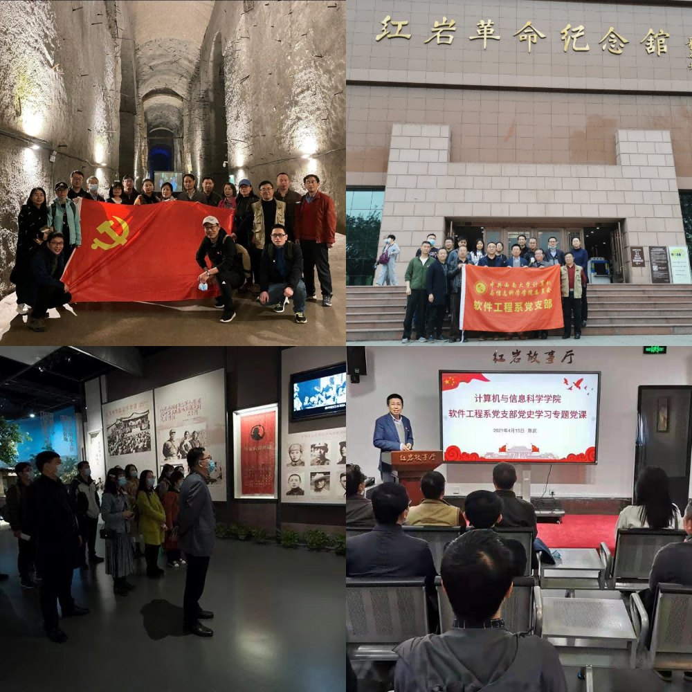 软件工程系党支部赴红岩革命纪念馆开展党史学习教育,体悟以周恩来为代表的南方局老一辈无产阶级革命家、共产党人和革命志士,在抗日战争及解放战争初期的斗争中形成的革命精神——红岩精神。在红岩三维展厅,支部党员参观由学校参与的国家科技支撑计划课题“红岩文化展演与传播技术集成与示范”的建设成果,双曲面投影技术使大家“亲临”大轰炸前后的重庆,醒目的“愈炸愈强”标语充分显示抗战时重庆人民不屈的精神。党支部书记陈武同志在现场给全体党员上了一场生动的专题党课,号召大家传承红色基因,主动承担学科建设和教育教学职责,为软件工程一流本科建设贡献力量。