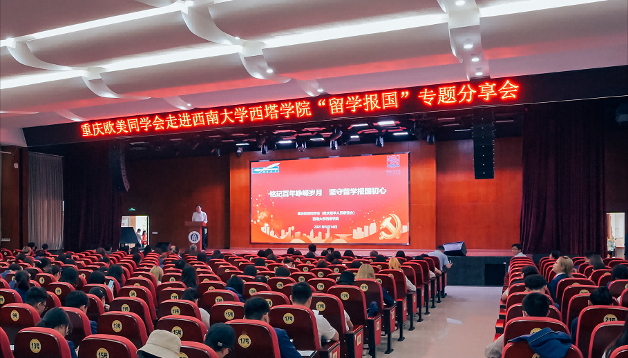 铭记百年峥嵘岁月,坚守留学报国初心。为进一步加强党史学习教育,发挥留学人员爱党爱国爱社会主义的典型示范带动作用,5月14日下午,由重庆欧美同学会主办、金年会jinnianhuicom西塔学院承办的“铭记百年峥嵘岁月,坚守留学报国初心——重庆欧美同学会留学报国故事分享会”在学校第二学生活动中心107举行。学校副校长陈时见、重庆欧美同学会留学人员代表及300余名西塔学院师生代表参会。重庆欧美同学会党组书记、秘书长范文佳主持分享会。