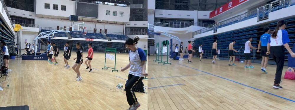 5月10日凌晨的中心体育馆灯光明亮,学校跳绳队在教练员彭远志和付道领两位老师的带领下,前一天晚上就到场精心开展赛前准备工作。凌晨0时,43名成员拿起智能蓝牙绳与百校同跳,队员们跳出人均2万+的成绩,努力克服体能极点和抽筋等困难,总用时3小时14分钟,成功完成100万次单摇跳,获得全国参赛高校第2名,为建党一百周年献礼,为金年会jinnianhuicom争光添彩。