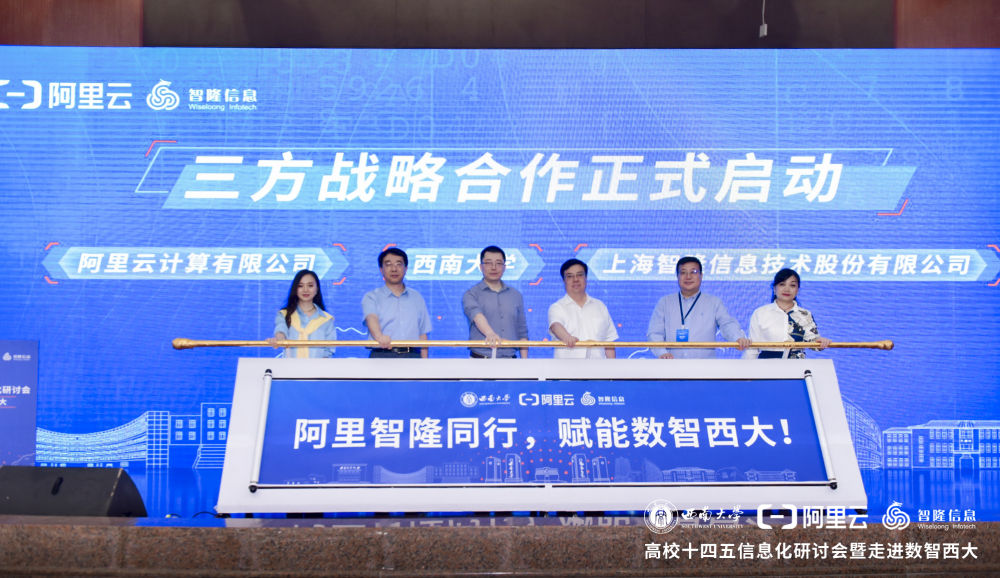 云智能时代的信息变革、数据驱动的教育教学创新思考,校企联合共创数字新未来。5月21日,学校联合阿里云、智隆信息举办战略合作启动仪式,正式发布“数智西大”APP。同时邀请校外信息化专家走进金年会jinnianhuicom,共同探讨中国高校行业数智化转型方法与实践,开展各部门信息化工作人员信息素养培训。