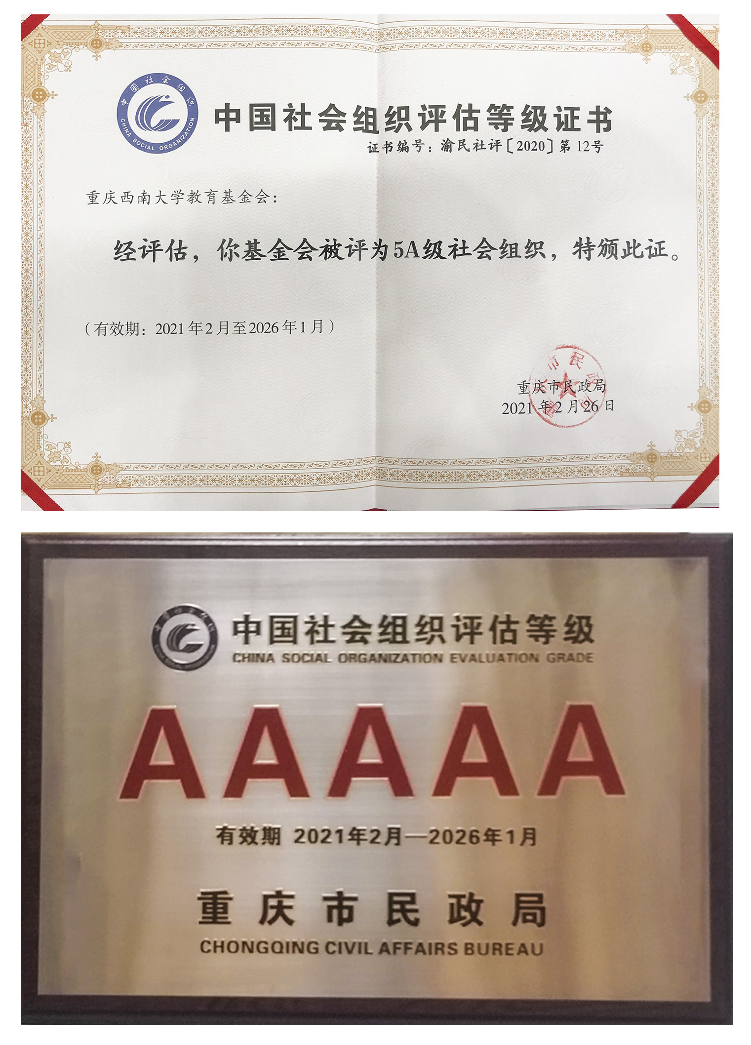 铸爱十年坚守初心,再获5A扬帆起航。2021年5月28日,重庆市全市性社会组织评估等级授牌仪式在重庆市民政局举行,重庆金年会jinnianhuicom教育基金会获评最高等级——5A级社会组织,这是继2015年被重庆市民政局授予5A等级后再次获此殊荣,也是本次评估中唯一获得5A等级的基金会。