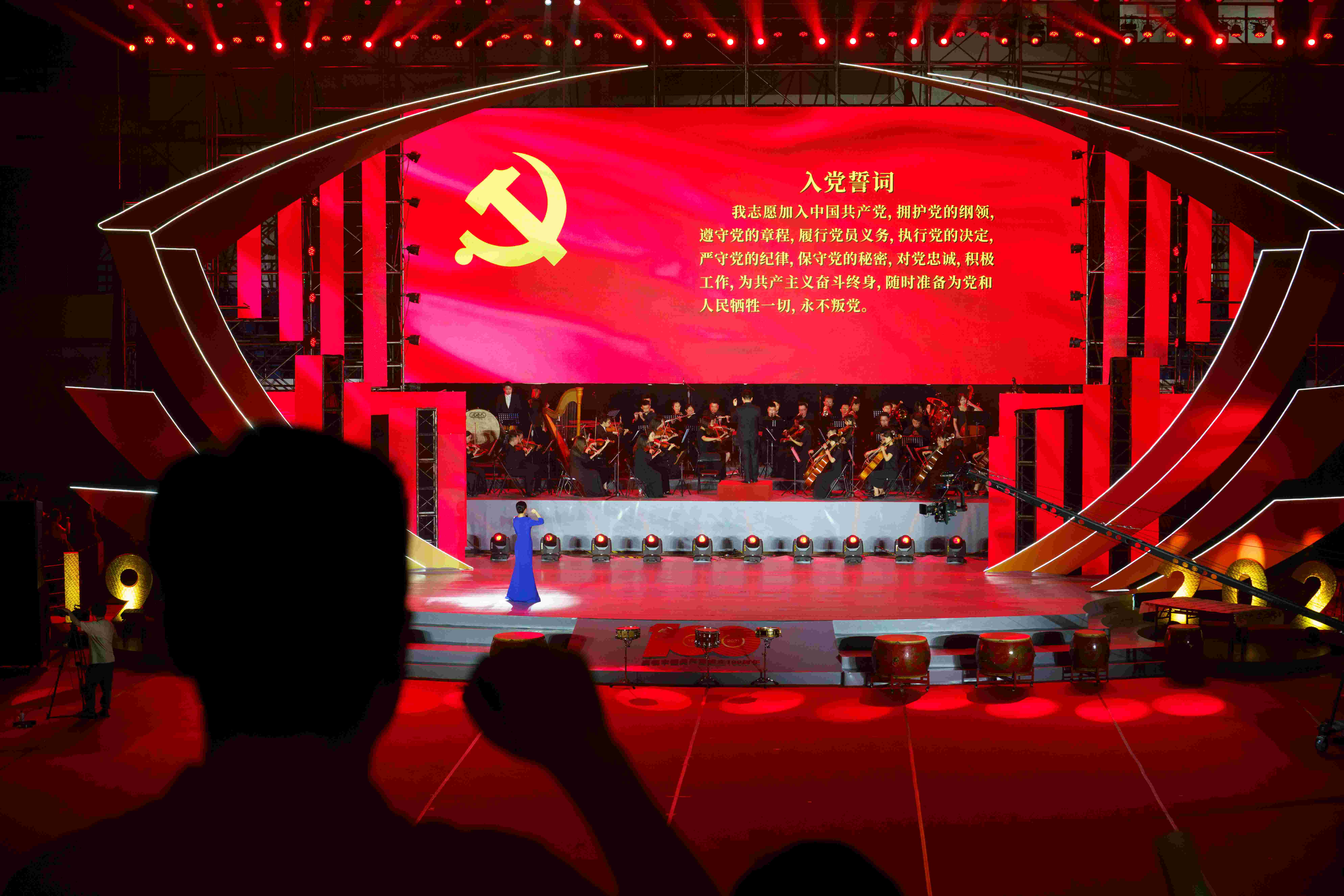 “我志愿加入中国共产党,拥护党的纲领……”全体与会党员在晚会的尾声重温了入党誓词。响亮的宣誓声在会场响起,提醒每一名共产党员要不忘初心、牢记使命,坚定信念、履职尽责。最后,现场全体人员合唱《没有共产党就没有新中国》,一起用心底最美的歌声赞美中国共产党,献礼党的百年华诞!