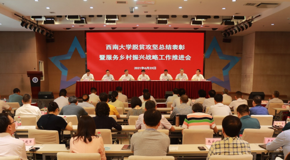会上,赵国华作了题为《巩固拓展脱贫攻坚成果 接续服务乡村振兴战略》的工作报告。他指出,党的十八大以来,学校全面贯彻落实党中央、教育部和重庆市关于脱贫攻坚的决策部署,统筹谋划,精准施策,对标对表,扎实推进,对口帮扶重庆市石柱县、忠县、丰都县、巫山县、巫溪县和定点扶贫云南省昌宁县工作取得了显著成效;面对推进乡村全面振兴的新任务、新要求,学校将充分发挥农科特色和综合优势,全面实施服务乡村振兴战略行动计划,推动科技下乡、人才下沉、成果转化、基地共建、要素对接,探索形成高质量服务乡村振兴战略的“西大模式”。