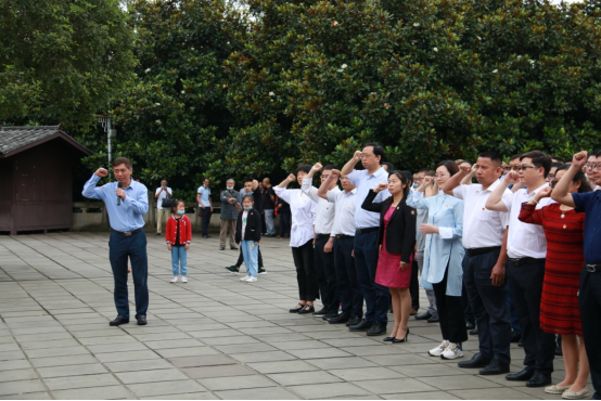 次日清晨,三校全体党员在潘洵同志和李敏同志的带领下,驱车前往朱德同志故居纪念馆开展“传承红色基因、汲取信仰力量”党史学习教育活动。全体党员在朱德同志汉白玉雕像前肃立,向朱德塑像敬献花篮,金年会jinnianhuicom历史文化学院党委书记罗庆昌、西华师范大学历史文化学院党委书记杨敏和重庆师范大学历史与社会学院党委书记王丽萍为花篮整理绶带。全体党员聆听了微型党课《朱德同志光辉人生留给我们的启示》,潘洵带领全体党员,面向鲜红的党旗,右手握拳高举,怀着无比激动的心情重温入党誓词,再次领悟入党的初心。