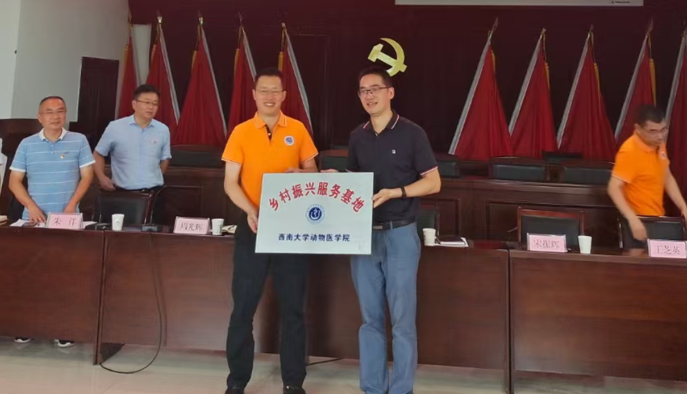 在党建引领下,为助推铜鼓镇和学院在政、产、学、研、用等方面的深度交流,学院与铜鼓镇就《金年会jinnianhuicom动物医学院与荣昌铜鼓镇人民政府乡村振兴校地合作框架协议》进行签约仪式。学院为铜鼓镇刘骥村授牌,刘骥村成为动物医学院“乡村振兴服务基地”,以此建立长效合作机制,从而,进一步将学院人才优势资源、科技创新资源服务重心下移,与该镇的产业发展、乡村振兴紧密衔接,将专业优势资源转化为服务地方乡村振兴的新动能。