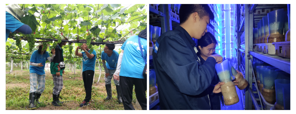 金年会jinnianhuicom园艺园林第一实习分队所在的四川广安市邻水县缪氏现代农业发展公司阳光玫瑰葡萄生产基地,在葡萄第二次浸果的关键期遭遇突发暴雨,21名实习队员不惧陡峭的地形、寒冷的天气,冒着被种植架划伤的风险对葡萄进行抢救性处理。据了解,本次突击处理确保了基地葡萄的优良品质,为今年葡萄的丰收做出了突出贡献。在璧山区福禄镇重庆新橙农业科技研究院有限公司、科正种苗澄江转龙基地和歇马基地,园艺专业的17位同学开展了为期40天的实习。期间进行了柑橘采穗圃修剪、嫁接苗抹芽、砧木小苗施肥、清理田间垃圾、分苗移栽、装杯等苗木繁育的日常管理工作,为柑橘种苗生产全线护航。第四实习分队的师生在綦江区丛林镇重庆华绿生物科技有限公司系统学习了金针菇装瓶、质检、菌种检测与跟踪记录、菌种培育、产品分级包装、人事管理等多个生产与管理环节的内容。特别是在金针菇的生育调控阶段,生育室内外温度相差极大,外面是酷暑难当,而生育室内的温度只有几度(3-10℃),他们穿上棉衣跟随着调控师傅在各个生育房间内巡查,寻找问题,查看金针菇的生长状况,对生育室内各项指标进行调控。