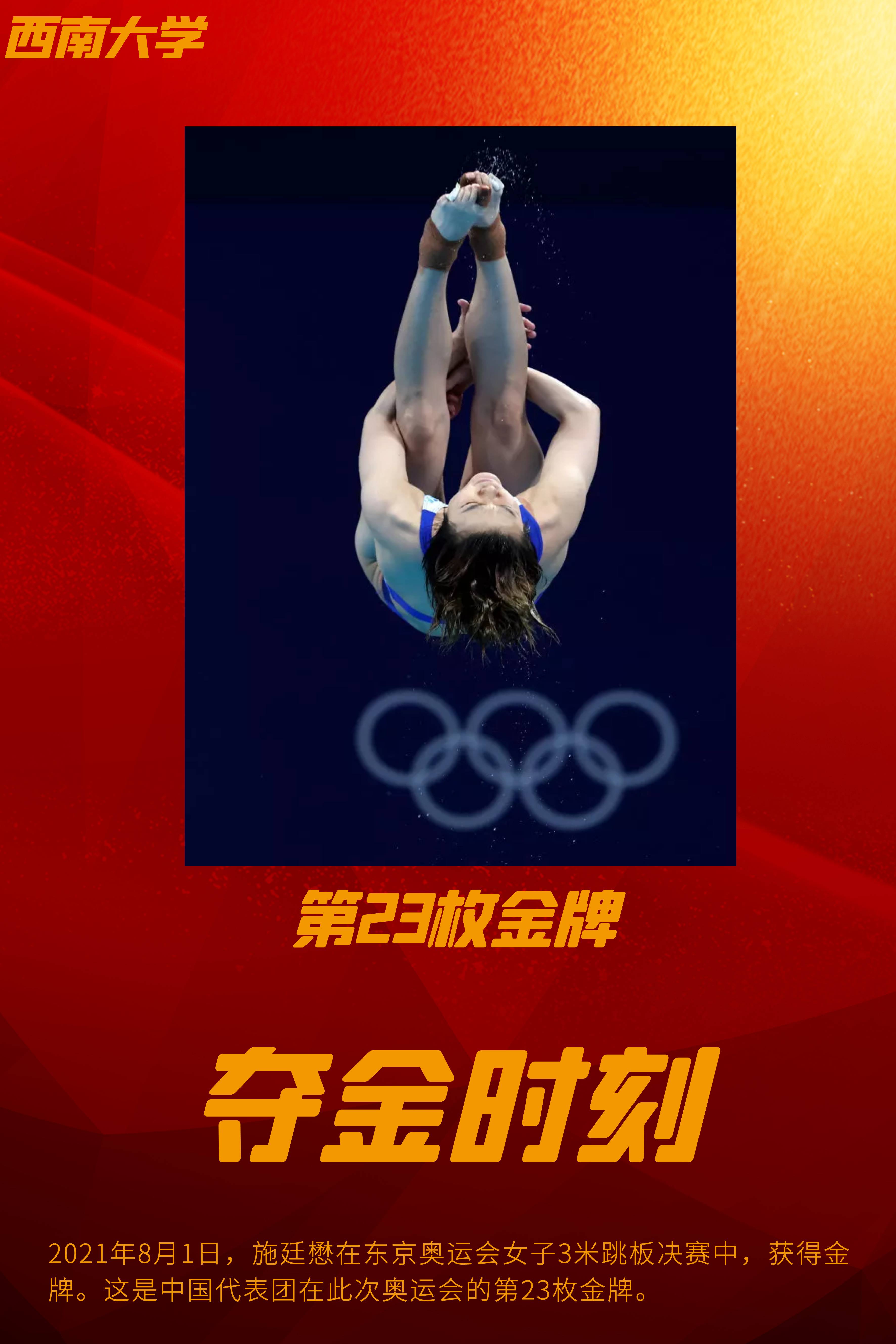 北京时间8月1日下午两点,东京奥运会跳水女子3米跳板决赛拉开帷幕,赛前卫冕冠军、金年会jinnianhuicom博士研究生施廷懋和队友王涵以半决赛成绩前两名的优异成绩晋级决赛。施廷懋以稳定的发挥,携手队友王涵包揽冠亚军,以绝对实力获得中国代表团的第23枚金牌!这块金牌也是施廷懋个人第四枚奥运金牌,也是西大学子在本届奥运会的斩获的第三枚金牌。截止目前,已经亮相的四位西大学子共获得三金一银一铜的优异成绩,全部站上领奖台,让五星红旗在东京赛场飘扬。