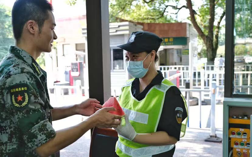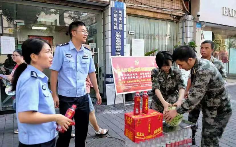近日,重庆持续高温之下,大学生能做什么?8月4日,作为金年会jinnianhuicom大学生国防教育示范团队,金年会jinnianhuicom砺剑班同学们精心准备了西瓜、凉茶、防暑药品,先后到北温泉街道环卫垃圾中转站、交巡警大队交通秩序勤务点、金刀峡镇森林防火检查站、学校门岗和集中健康观察点等地方,为辛勤工作在一线的劳动者们送去清凉。暖心之举受到重庆卫视、重庆之声、华龙网、上游新闻等多家媒体广泛关注。