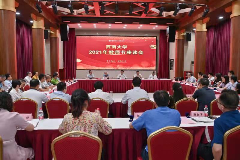 铸魂育人,初心不改。9月9日下午,学校在东方红报告厅举行2021年教师节座谈会,为今年学校“尊师主题月”拉开序幕。学校党委书记李旭锋、校长张卫国、党委副书记安春元、副校长陈时见、中国工程院院士向仲怀,受表彰教师、2020-2021学年荣休教师、新进教师、青年教授、海外归国教师、黄大年式教师团队、优秀学生代表,以及机关部门、直附属单位主要负责人,各学院(部)负责人代表参加了座谈会。座谈会由张卫国主持。
