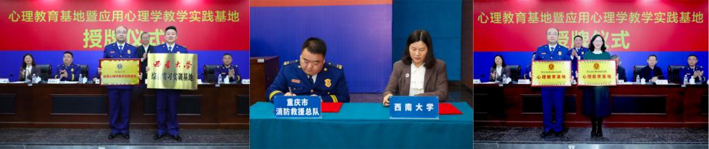 应用心理学教学实践基地的建设,一方面将助力学校新文科建设,另一方面对于心理学科在人才培养、科学研究、学科发展、社会服务等方面具有重要意义,将进一步深化学校和重庆市消防救援总队的合作,为重庆地方经济社会发展和学校“双一流”建设作出更大贡献!