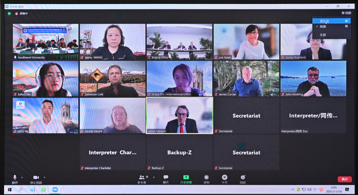 在与奥克兰大学的JMC会议上,陈时见在致辞中简要回顾学校和奥克兰大学合作办学的历史,赞扬办学以来项目在教学、管理、学生教学质量和就业方面所取得的成绩,并对今后继续合作寄予极大期望。梅特森高度赞扬项目取得的成就,希望双方继续深化合作,共同推动两校内涵式发展。