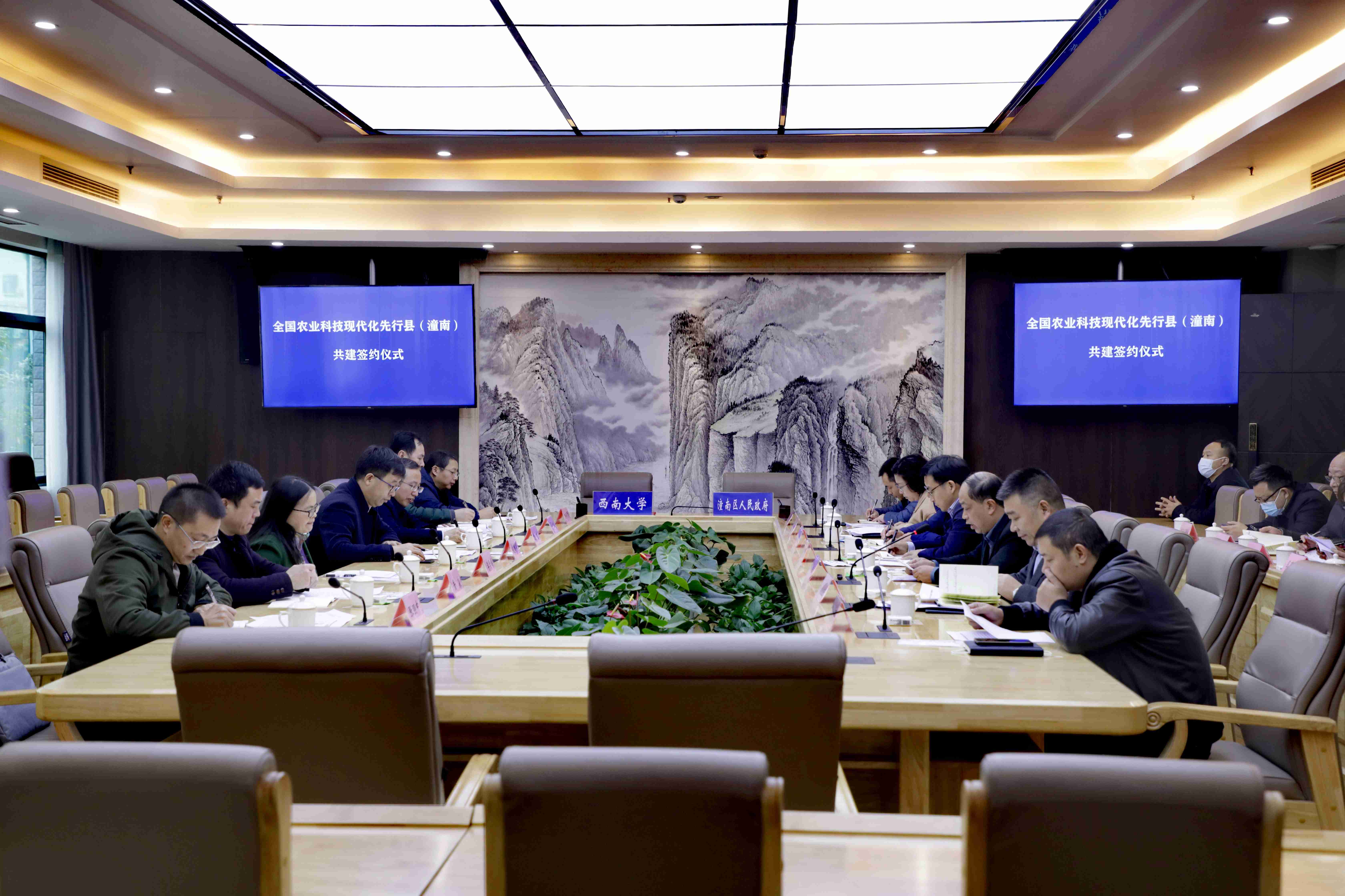 会议通报全国农业科技现代化先行县共建工作前期推进情况,审议并通过共建方案。赵国华和罗全良代表校地双方签署《潼南区人民政府·金年会jinnianhuicom共建全国农业科技现代化先行县合作协议》。协议约定,“十四五”期间,区校双方将围绕全国农业科技现代化先行县创建总体要求,在农业关键技术攻关、农科教协同创新基地建设、智慧农业试验区建设、农业技术创新与服务平台建设、生态宜居乡村建设、新型经营主体培育、产业人才培养等方面开展深入合作,努力探索形成高校科技支撑县域经济发展、服务乡村振兴的新模式。