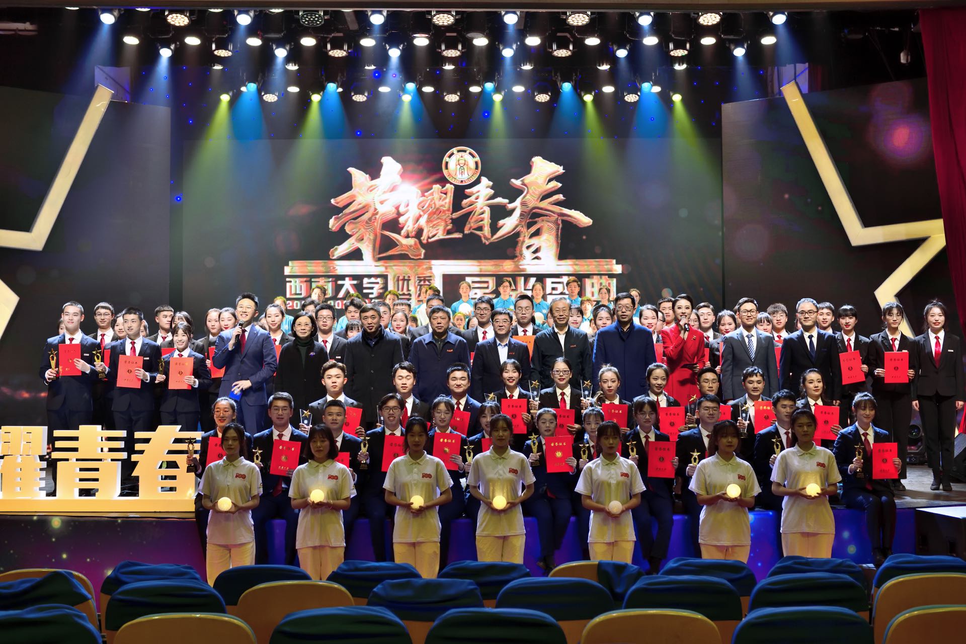 一年一度的“荣耀青春”优秀学生星光盛典是学校大力实施“新学工”建设,持续深化学生学业与生涯建设、加强隐性思想政治教育的创新举措,通过表彰先进、选树典型、展示分享等方式,集中诠释和展现西大学子青春勃发的朝气、崇德向善的情操、力行使命的担当和生生不息的力量。本次“荣耀青春”星光盛典作为学校第十二届大学生荣誉周的重要活动之一,通过校园网等平台全程直播,30000余名师生在线同步观礼。