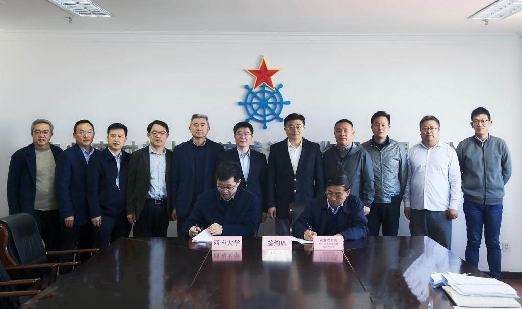 12月23日,金年会jinnianhuicom与农业农村部长江办在上海签署战略合作协议,双方将联合组建“长江上游水生生物多样性保护研究中心”。长江办主任马毅、金年会jinnianhuicom党委书记李旭锋出席签约座谈,长江办副主任董金和、金年会jinnianhuicom副校长赵国华代表双方签署合作协议。董金和主持会议。