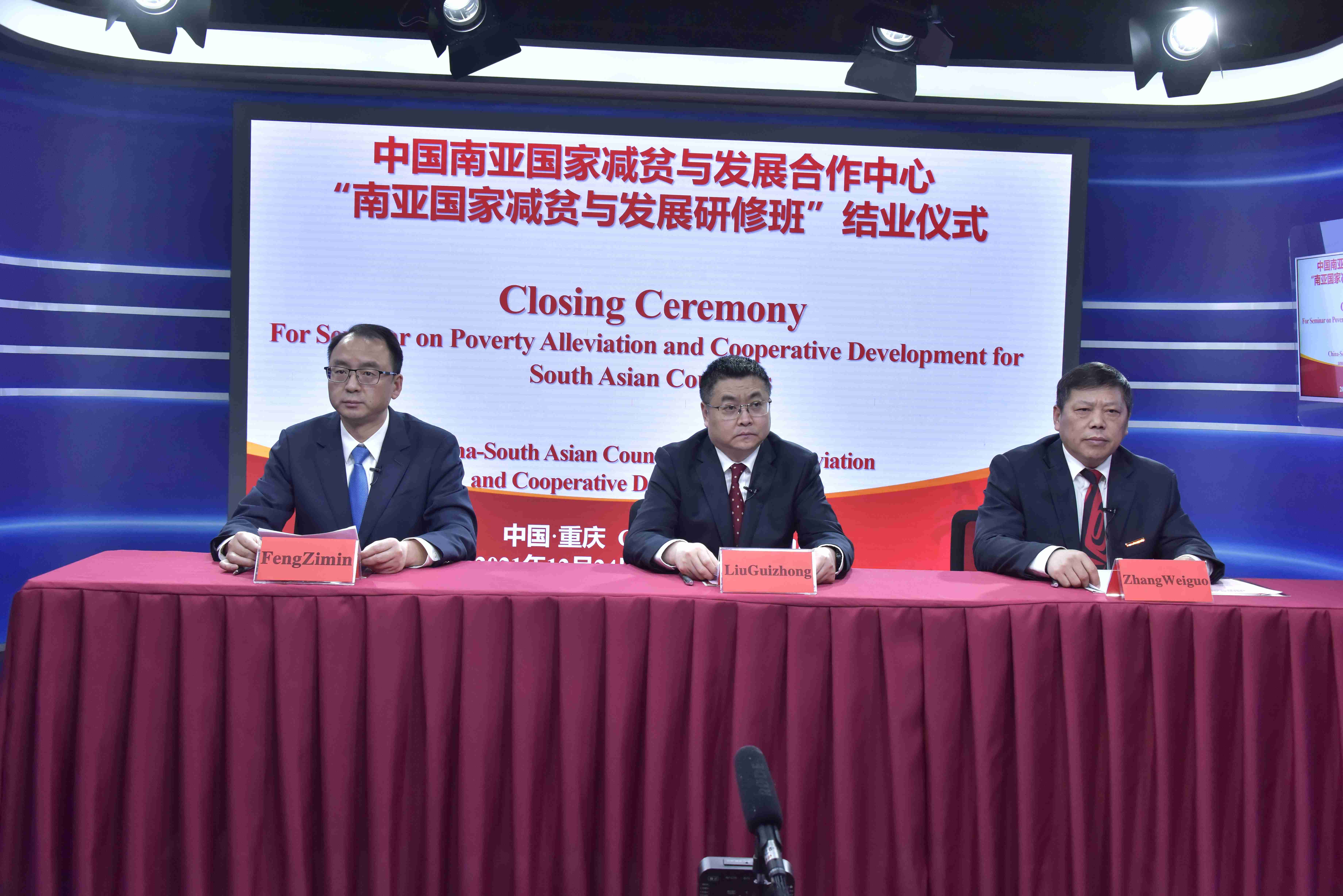 12月24日,中国南亚国家减贫与发展合作中心“南亚国家减贫与发展研修班”在学校举办线上结业仪式,重庆市乡村振兴局局长刘贵忠、重庆市政府外办副主任冯子敏、金年会jinnianhuicom校长张卫国出席结业仪式。来自阿富汗、巴基斯坦、尼泊尔、斯里兰卡、孟加拉国五国涉及发展、减贫、农业、经济和国际合作等领域的相关部门官员共计55名学员完成学习内容,经考核合格,准予结业。