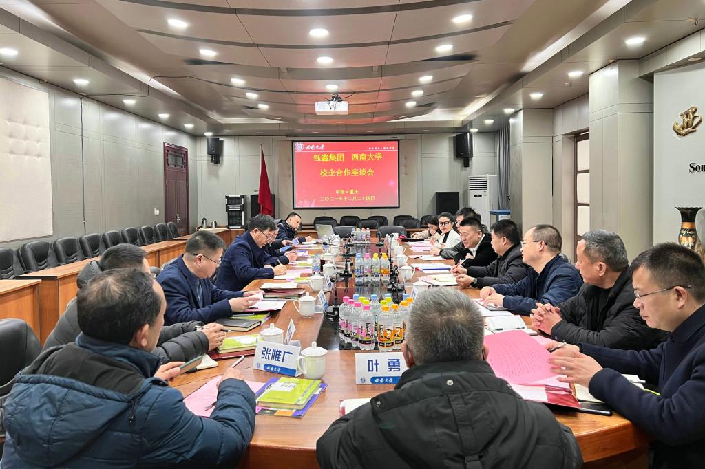 12月24日下午,重庆钰鑫实业集团有限责任公司总裁尹顺新一行来校开展校企合作交流座谈。座谈会之前,学校党委书记李旭锋会见尹顺新一行,对他们的来访表示欢迎,并希望双方通过交流,能搭建更多深度合作的平台,促进校企双方共赢发展。