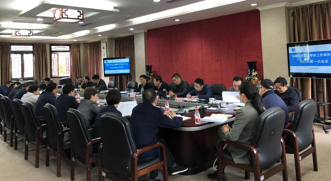 为科学谋划定点帮扶工作,4月6日,学校召开定点帮扶工作领导小组2022年第一次会议。定点帮扶工作领导小组组长、学校党委书记李旭锋,定点帮扶工作领导小组组长、校长张卫国,定点帮扶工作领导小组副组长、党委副书记安春元、潘洵,副校长赵国华、韩旭东出席会议,定点帮扶工作领导小组成员单位主要负责人参加会议。会议由赵国华主持。