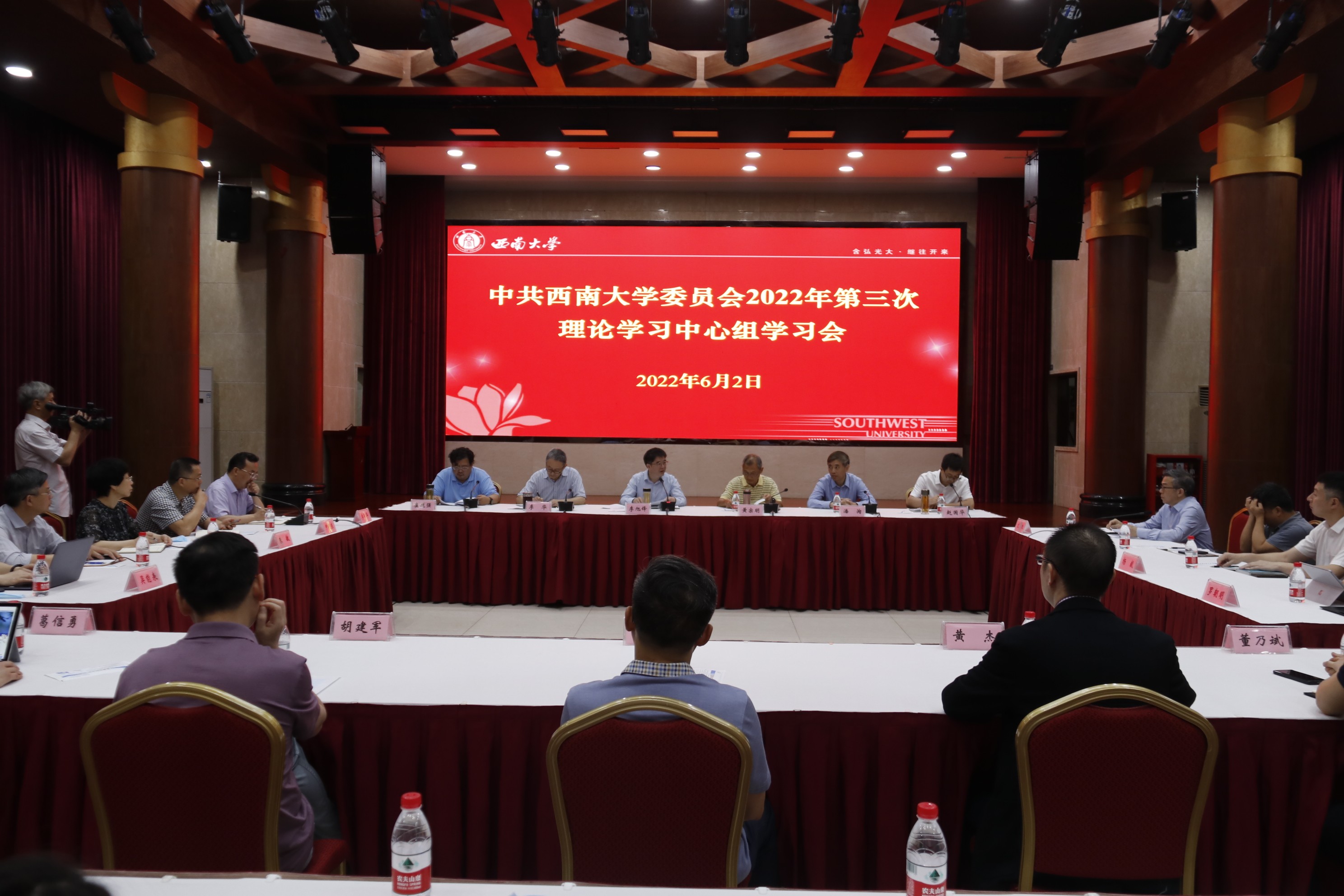 6月2日,学校在东方红会议厅召开2022年第三次党委理论学习中心组学习会,全面落实习近平总书记对重庆所作重要讲话和系列重要指示批示精神,传达学习贯彻重庆市第六次党代会精神。