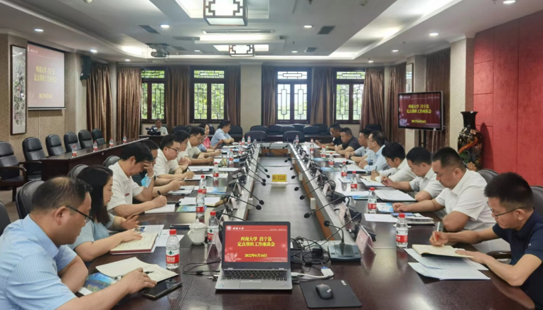 国内合作处处长程龙汇报了学校定点帮扶工作进展情况,与会人员围绕昌宁产业发展、教育提升、社会治理等重点帮扶工作进行了深入交流。