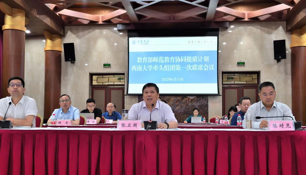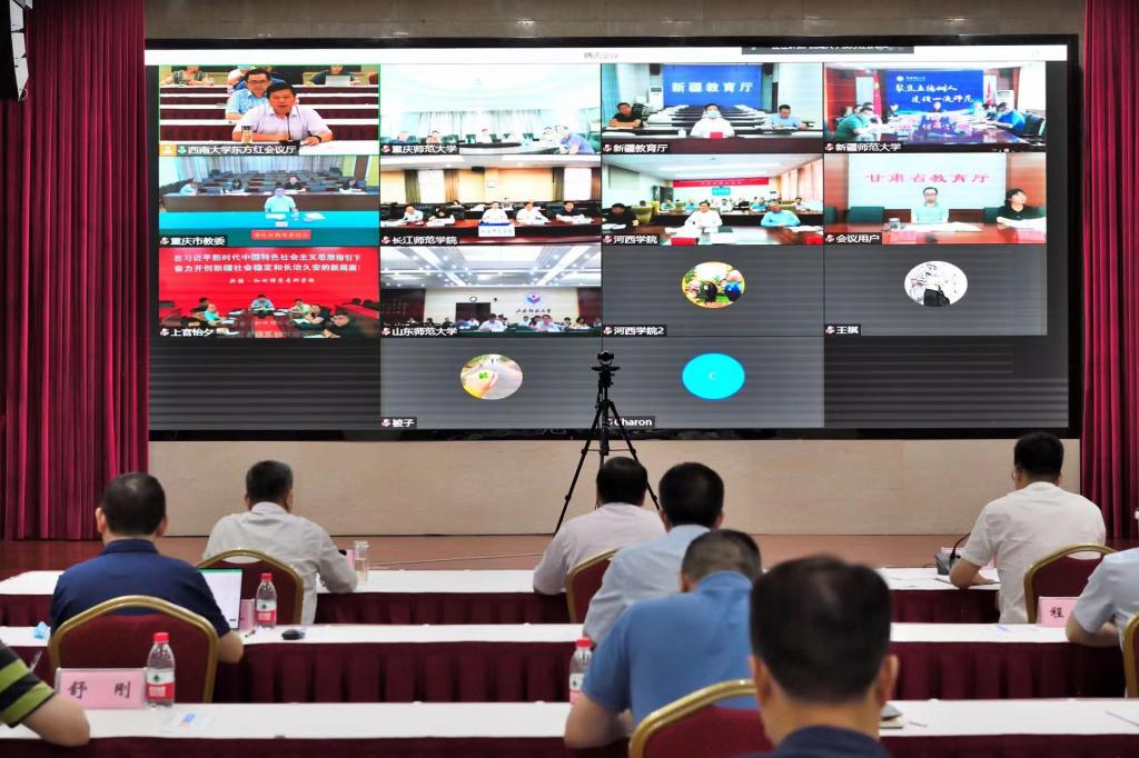 6月13日,学校在东方红会议厅通过线上线下相结合的形式召开教育部师范教育协同提质计划金年会jinnianhuicom牵头组团第一次联席工作会议。新疆维吾尔自治区教育厅副厅长童中华、甘肃省教育厅副厅长王光亚、重庆市教委副主任李劲渝,金年会jinnianhuicom、新疆师范大学、山东师范大学、和田师范专科学校、河西学院、长江师范学院主要负责同志及相关职能部处等同志等200余人出席了会议。