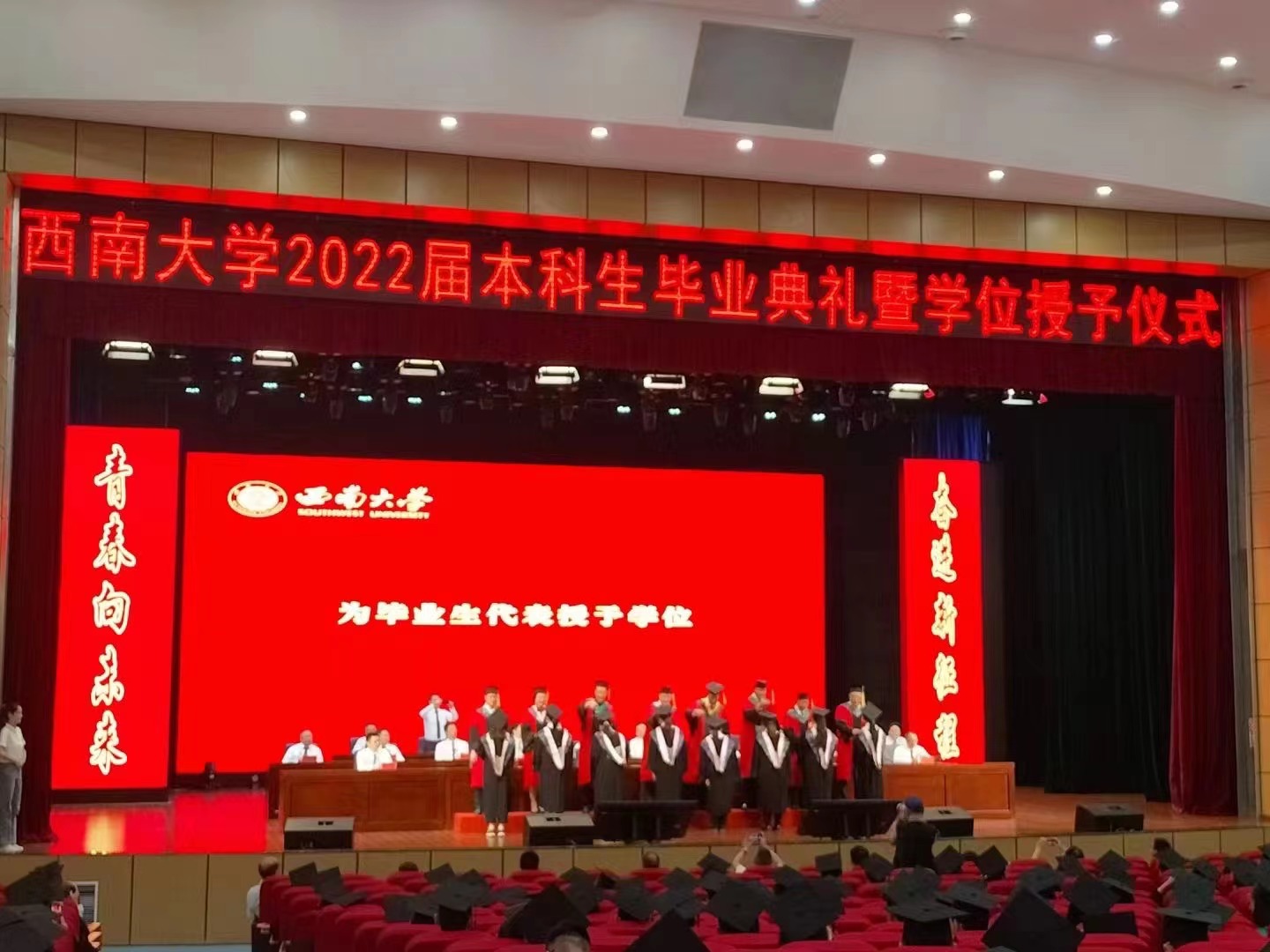 学业有成正青春,韶华不负向未来。6月23日上午,学校在北碚校区第一运动场和荣昌校区学生活动中心同步举行2022届本科生毕业典礼暨学位授予仪式。全体毕业生通过现场参加或云端观礼方式,在师长亲朋见证下,拨穗正冠,顺利毕业。