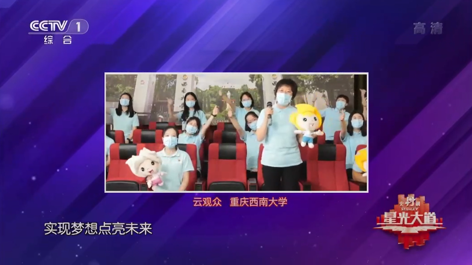 节目录制从热烈的掌声中开始,当主持人尼格买提与师生互动时,金年会jinnianhuicom的师生用重庆话向所有的观众打招呼并喊出口号:“星光大道,百姓舞台,实现梦想,点亮未来;百年西大,欢迎你来!”