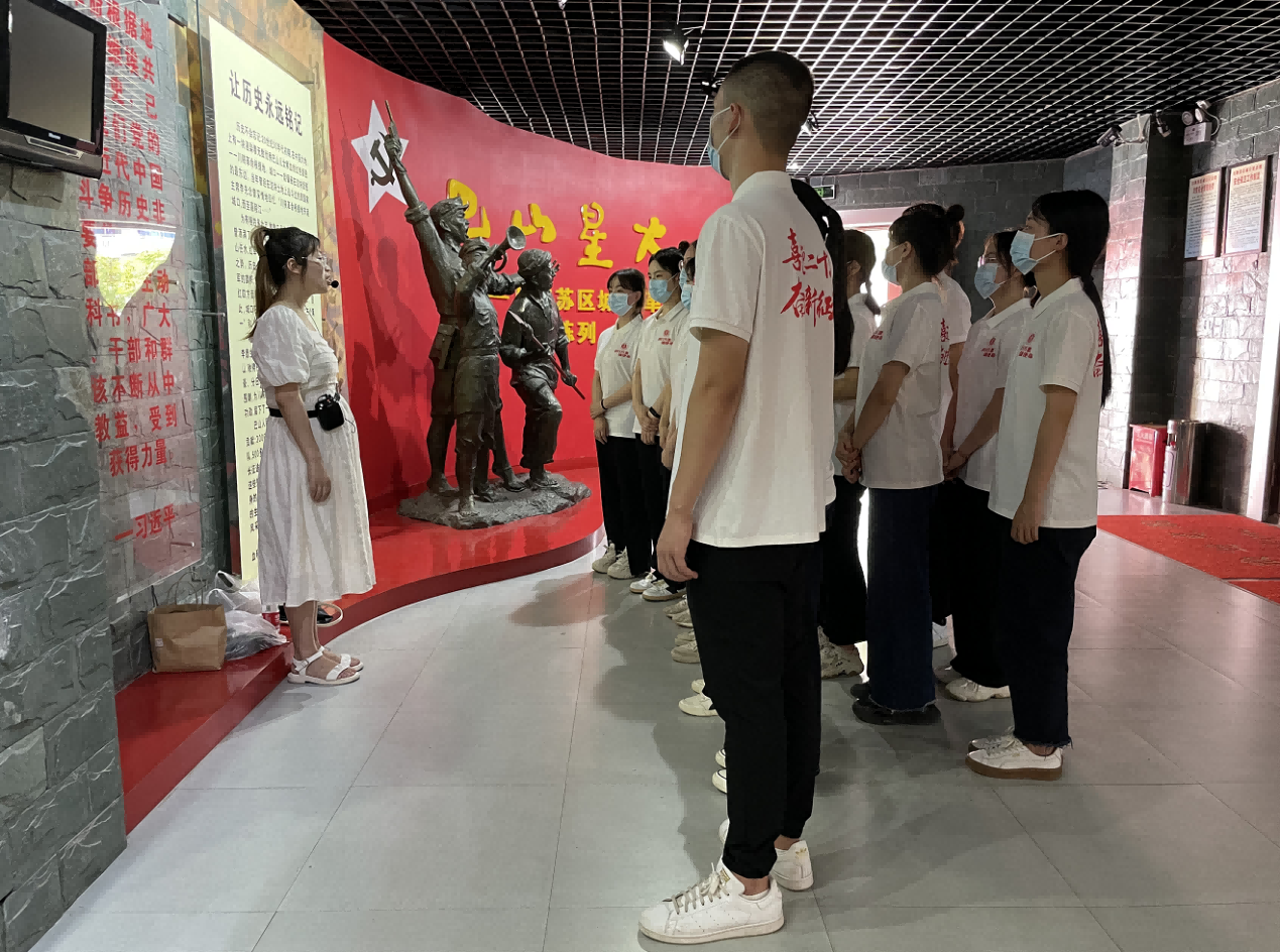 在川陕苏区城口纪念馆,实践队全体党员在党旗下庄严宣誓,重温入党誓词,叩问入党初心。随后,队员们拾阶梯而上,共同瞻仰“川陕革命根据地城口苏维埃政权纪念碑”。跟随着讲解员的脚步,队员们追忆了老一辈无产阶级革命家的红色足迹:李先念、徐向前、许世友……一件件实物、一帧帧图片、一段段文字记录了革命先烈为实现国家独立、民族解放前赴后继、英勇献身的英雄事迹和光辉历史,再现了坚韧不拔、奋勇直前的革命精神。队员们纷纷表示,要铭记光荣传统,传承红色基因,发扬革命精神,为实现中华民族伟大复兴接续奋斗。