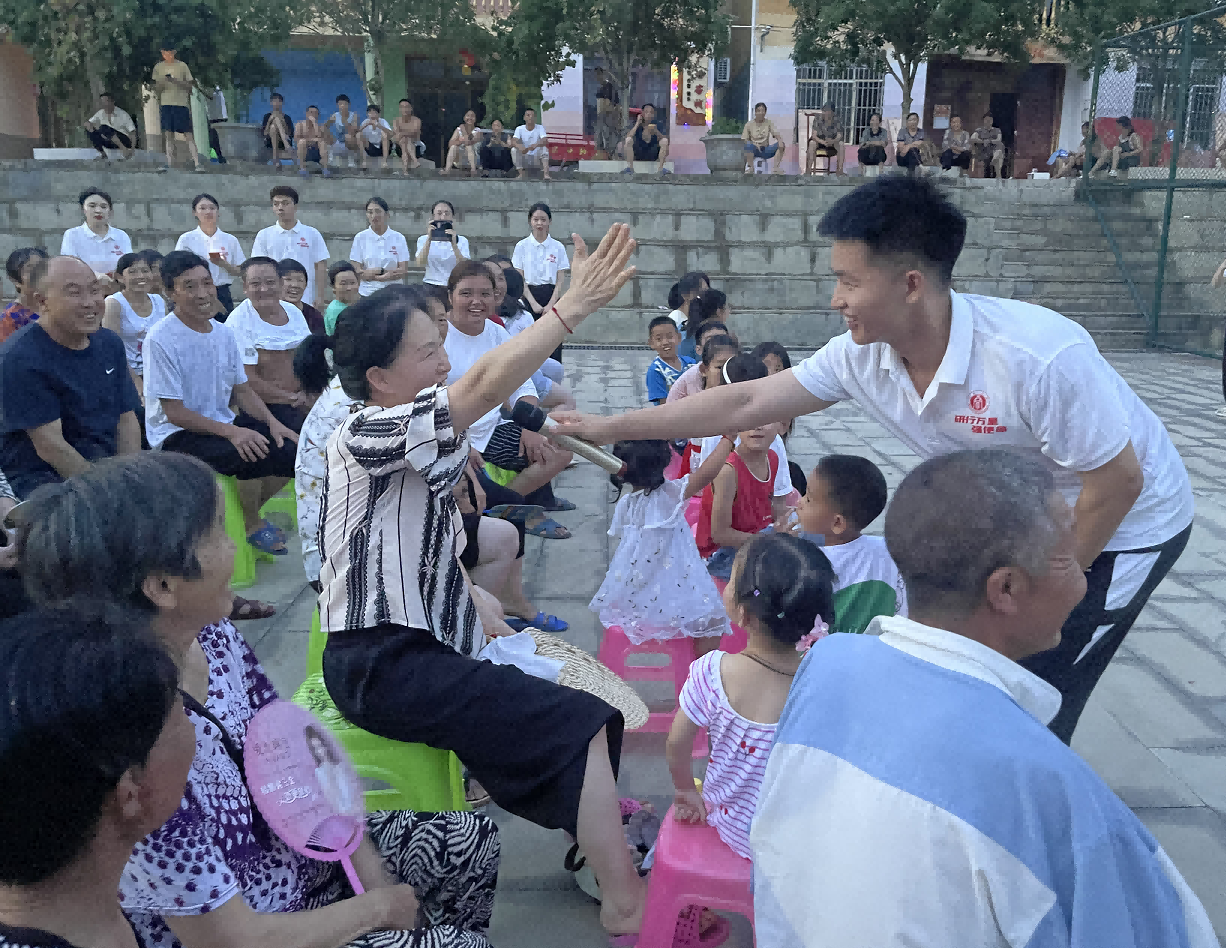 在东河村村民广场,实践队围绕乡村振兴战略出台的背景和意义,乡村振兴战略的基本内涵,重庆市实施乡村振兴战略的初步实践,“两不愁三保障”等重要举措的核心要义等,用通俗易懂的语言,向村民们普及了乡村振兴相关政策。东河村村委会干部、百余名村民到场倾听。实践队重点讲述了乡村振兴给老百姓带来的新变化、新机遇,并引导大家齐心协力,共同奋斗,一起创造光明的未来。党的理论知识竞答环节将宣讲活动推向高潮,村民们热情高涨,踊跃抢答,现场欢声笑语不断。宣讲活动在实践队员与村民们嘹亮的红歌合唱中进入尾声,歌声交织在氤氲夜色之中,为宣讲活动画上圆满的句号。在咸宜镇李坪村,实践队员向村干部详细了解了当地农民土地承包、流转、经营等相关政策,帮助村干部登记并核对农民土地承包实际面积等基础信息,做好现场的组织动员、宣传引导和秩序维护等工作,加强土地政策宣传,夯实惠民基础。