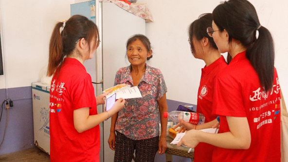 实践团在普陀村走访调研,了解到当地村民普遍在庭院散养家禽,存在养殖环境无保障、引种要求不严格、病死禽类处理不当等隐患。为提高村民对散养隐患的防控意识,成员们去到村民家中讲解散养家禽存在的问题,分发家禽疾病防控资料,并提供常用、基础的畜禽用药。