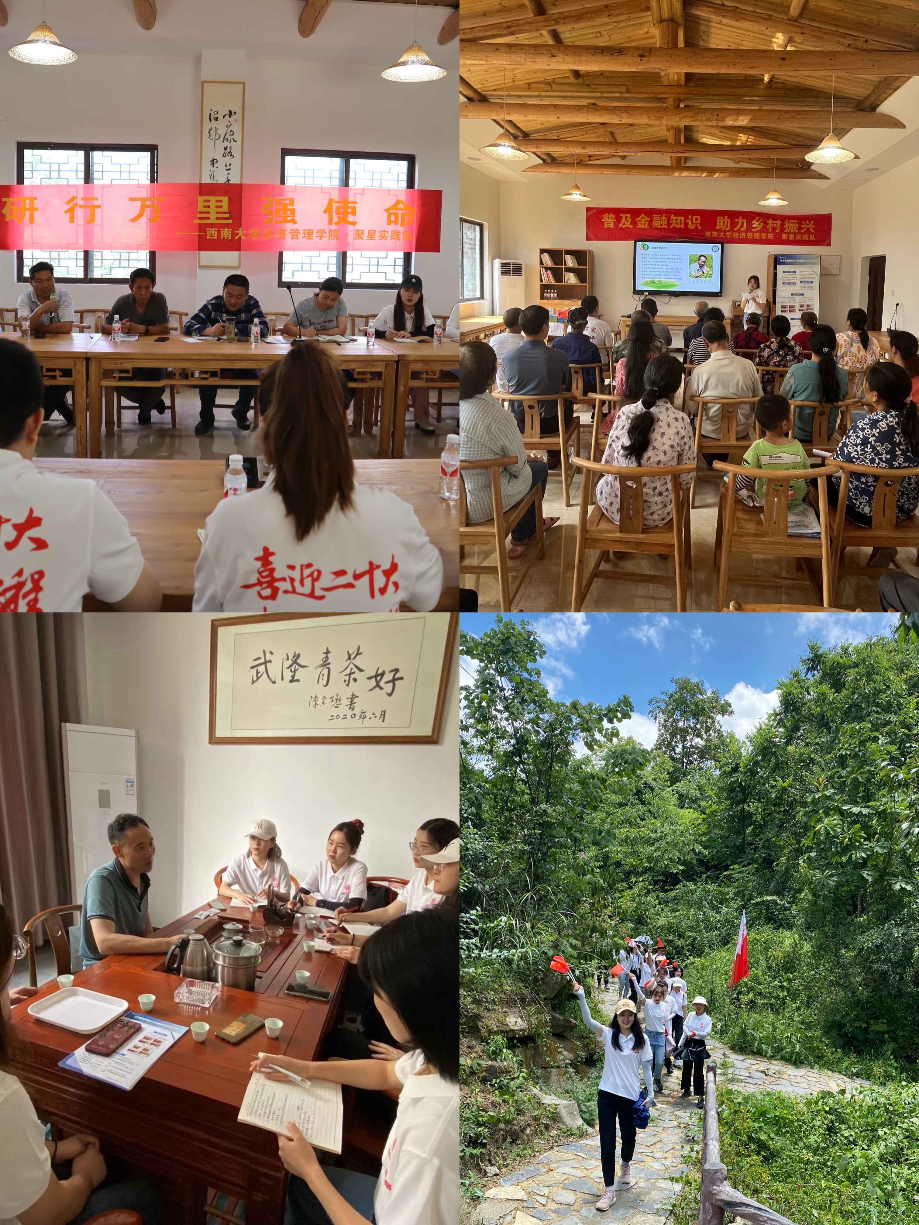 近日,经济管理学院•聚星实践队组织了“研行万里强使命”暑期研究生社会实践活动。本次社会实践前往重庆市武隆区后坪乡文凤村,历时5天,先后开展了村委座谈分享会、金融知识宣讲、特色产业调研和重走红军路等系列活动。