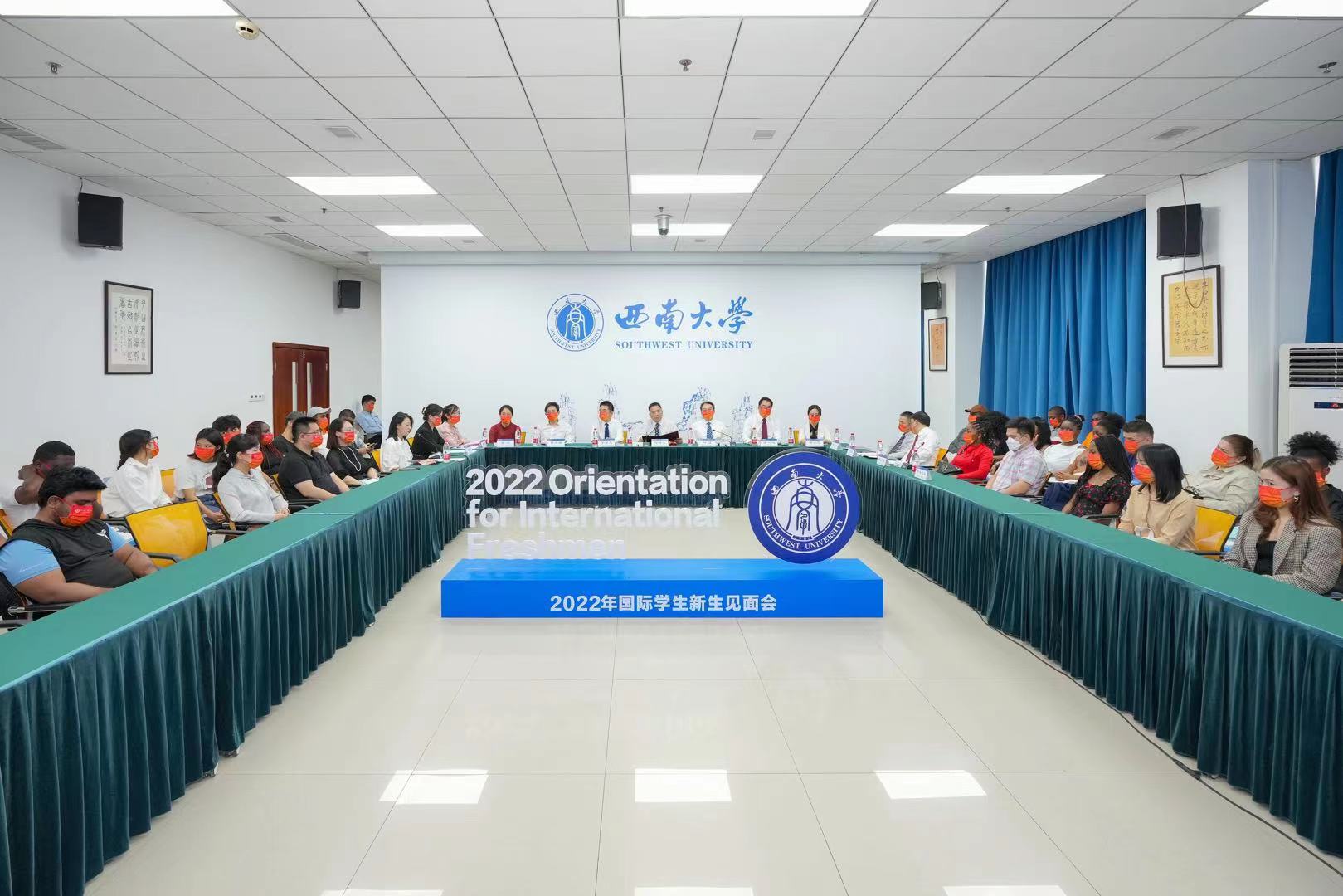 9月30日下午,学校2022级国际学生新生见面会通过“线上+线下”的方式在国际学院紫云楼317会议室举行。副校长陈时见,教务处、研究生院、学生工作处、国际学院等单位负责人,以及346名境内外新生参加见面会。
