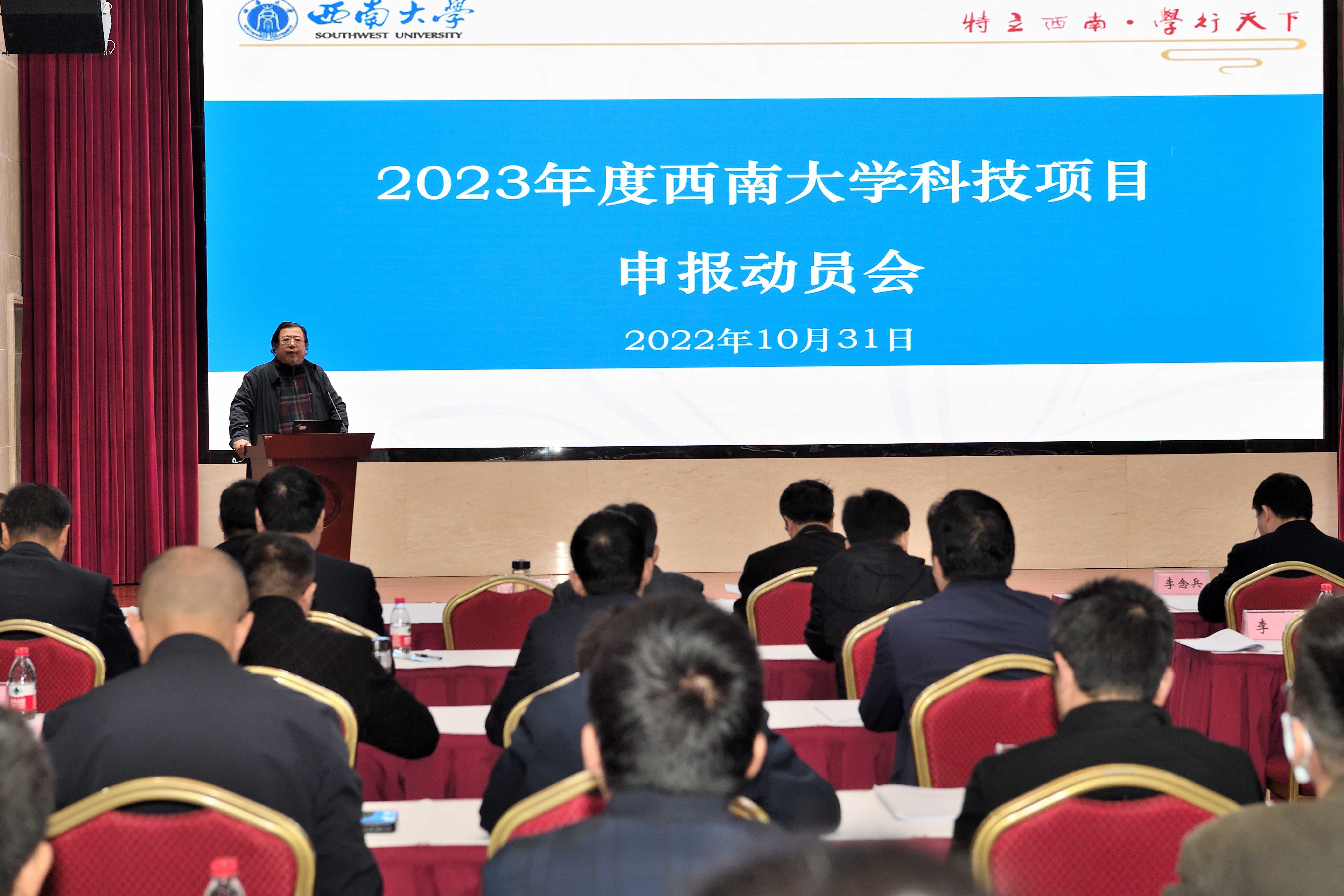 10月31日上午,学校在东方红会议厅召开2023年度金年会jinnianhuicom科技项目申报动员大会。重庆市科学技术局副局长许志鹏,学校党委书记李旭锋,副校长崔延强出席会议,学校二级教学科研单位主要负责人、分管领导,校管独立科研机构负责人,自然科学类各科研基地负责人,科学技术处相关人员参加会议。