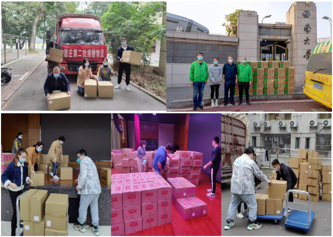 为助力学校疫情防控工作,重庆金年会jinnianhuicom教育基金会迅速行动起来,广泛联络广大校友等社会爱心人士和企业,将社会公益捐赠汇聚成抗疫“暖流”,凝集慈善爱心为学校战“疫”工作添砖加瓦。截至目前,基金会联合食品科学学院共同募集价值15万余元抗疫生活物资,并联合相关单位对物资进行转运、消杀和分发。