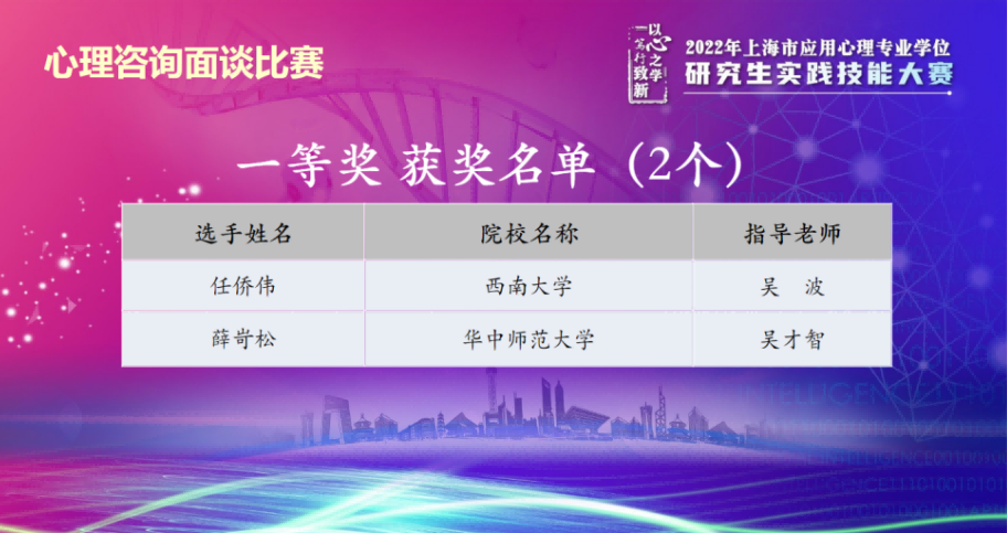 据悉,本次大赛由全国应用心理专业硕士教学指导委员会指导,上海市应用心理专业学位研究生教育指导委员会主办,华东师范大学心理与认知科学学院与上海交通大学医学院附属精神卫生中心承办。该比赛旨在通过心理咨询面谈技能评测和心理科普微视频作品展示,考查学生心理学基本功的掌握以及灵活运用到教学和生活实践的能力,是对学生知识储备、专业技能以及逻辑思维能力的综合评估。