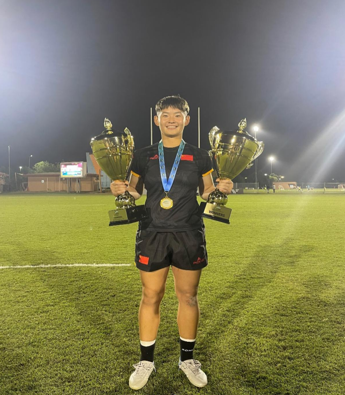 11月28日凌晨,中国女子橄榄球队以21比14战胜日本队,以四连胜的成绩夺得亚洲系列赛阿联酋站冠军,同时凭借3站2冠的战绩获得了2022年度亚洲系列赛总冠军,学校2021级运动训练专业学生庄程程表现出色。