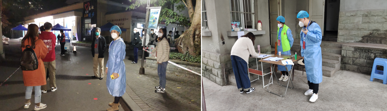 11月12日起,北碚全域疫情形势严峻,多个社区先后被封控,参与志愿服务的教工多人被封在所住小区,加之黄树村片区周边疫情出现散点多发,防控力量明显吃紧。经学校防控指挥部研究,指示由片区所住研究生较多的培养单位派出志愿者增援,在研究生工作部指导下,继续由植物保护学院牵头,与经济管理学院、资源环境学院、工程技术学院、食品科学学院、蚕桑纺织与生物质科学学院的志愿者们一起,共同开展片区疫情防控工作。11月12日—22日,志愿者团队在完成繁重保供任务基础上,早中晚轮班值守连续作战。他们坚持督促学生出入宿舍登记报备、外出请假销假,协助学生办理就医等特殊事项,帮助学生消杀快递外卖,组织学生全员核酸应检尽检。