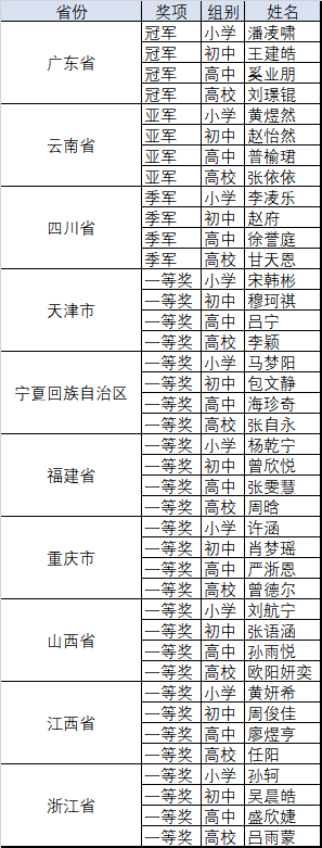 本次知识竞赛决出了团体冠军、亚军、季军,以及团体一、二、三等奖。部分获奖代表队名单如下: