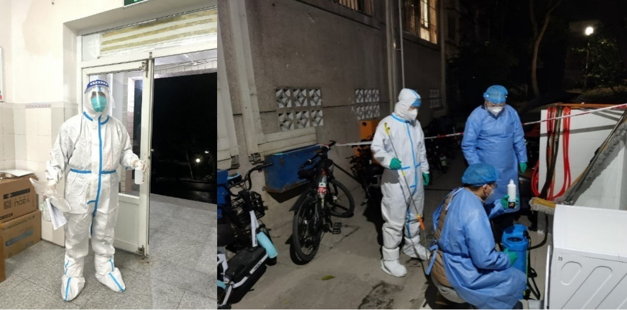 在黄树村,数名博士后争当志愿先锋,临时管控期间,在南社区活动中心临时住宿、睡行军床,早起晚休甚至带病坚持,协同开展信息摸排、组织核检、应急处置、生活保障等工作,有的老师连夜在黄树村22栋、23栋进行消杀和垃圾清理等工作,穿着防护服工作到满身汗水。