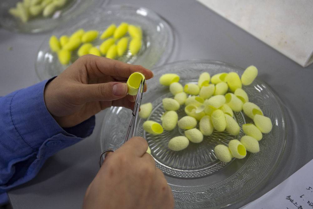 “家蚕的天然茧色可分为三大类:不含或含有微量色素的白茧;由类胡萝卜素沉积形成的黄红茧,如金黄茧、肉色茧、粉色茧、锈色茧等;由黄酮类化合物沉积形成的绿茧。”家蚕基因组生物学国家重点实验室教授童晓玲说,其中绿茧比其他颜色的蚕茧更难得,脱胶后蚕丝仍能呈现天然绿色,抗菌、抗氧化、防紫外线等性能更强,具有重要的开发利用价值。此前科学界的研究已基本揭示黄红茧系形成的分子基础,但绿茧的遗传基础尚未被完全揭示。