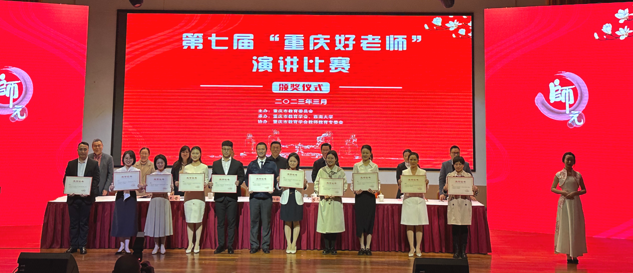 比赛结束后,重庆市委教育工委委员、市教委副主任李劲渝,重庆市教育委员会二级巡视员刘先海,学校副校长陈时见,重庆教育学会会长钟燕,市教委师范教育处副处长王晋,重庆市教育学会监事长粟梅及学校党委教师工作部、教师教育学院有关负责人参加颁奖典礼。该环节由刘先海担任主持。经过激烈角逐,中小学教师组评选出一等奖10名、二等奖20名、三等奖30名、优秀组织奖2个(南川区教委和重庆市三峡学院);公费师范生组评选出一等奖2名、二等奖3名、三等奖9名。