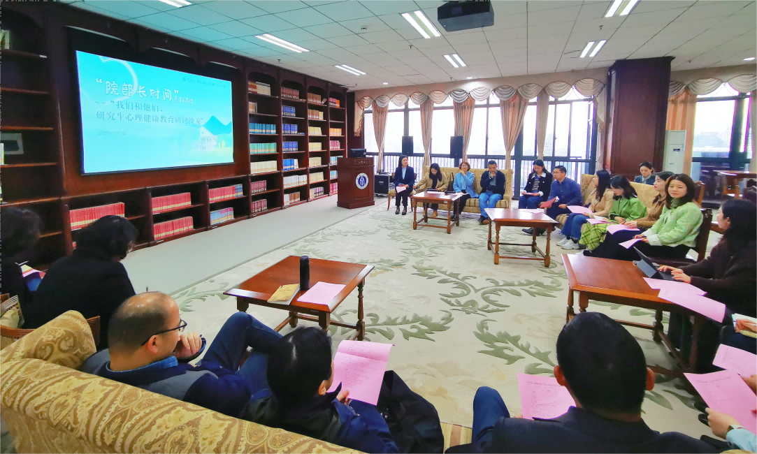 为进一步关注研究生群体心理健康,构建新型正向导学关系,3月10日,研究生院、党委研究生工作部在中心图书馆9楼举办“院部长时间”系列活动——“我们和他们,研究生心理健康教育研讨沙龙”。食品科学学院博士生导师曾凯芳教授、大学生心理健康教育与服务中心主任谢沁怡、心理学部心理咨询研究与培训中心主任杨发辉副教授和教师苏缇应邀作交流发言,党委研究生工作部相关负责同志,部分培养单位研究生导师、党委副书记、辅导员代表共三十余人参加沙龙。