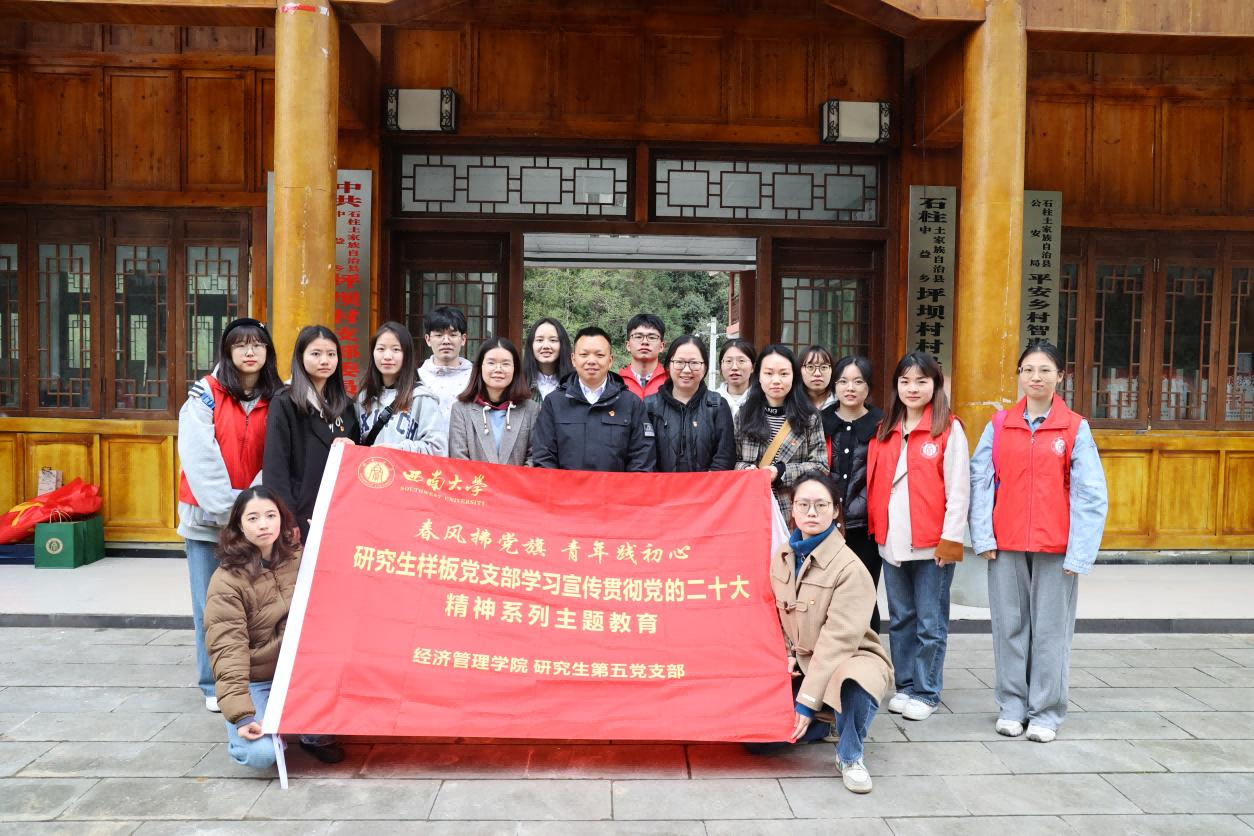 为全面深入学习宣传贯彻党的二十大精神,切实感受乡村振兴建设成果,激励青年学子不断奋进,3月18日至19日,经济管理学院研究生第五党支部赴重庆石柱中益乡开展了“学思践悟二十大,砥砺奋进新征程”主题党日活动。学校党委研究生工作部党员同志参加了此次活动。