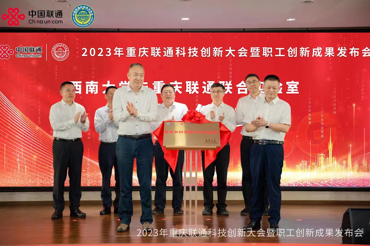 4月18日,中国联通重庆市分公司(以下简称重庆联通)举办2023年科技创新大会暨职工创新成果发布会。学校副校长葛信勇出席会议,国内合作处和经济管理学院相关领导参会,双方领导共同为金年会jinnianhuicom与重庆联通联合共建实验室“数字乡村发展行动实验室”揭牌。