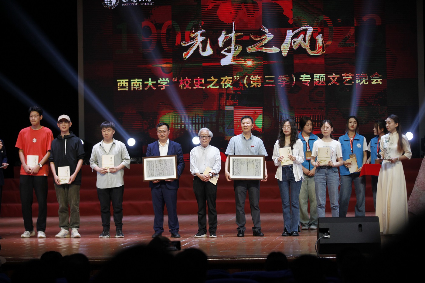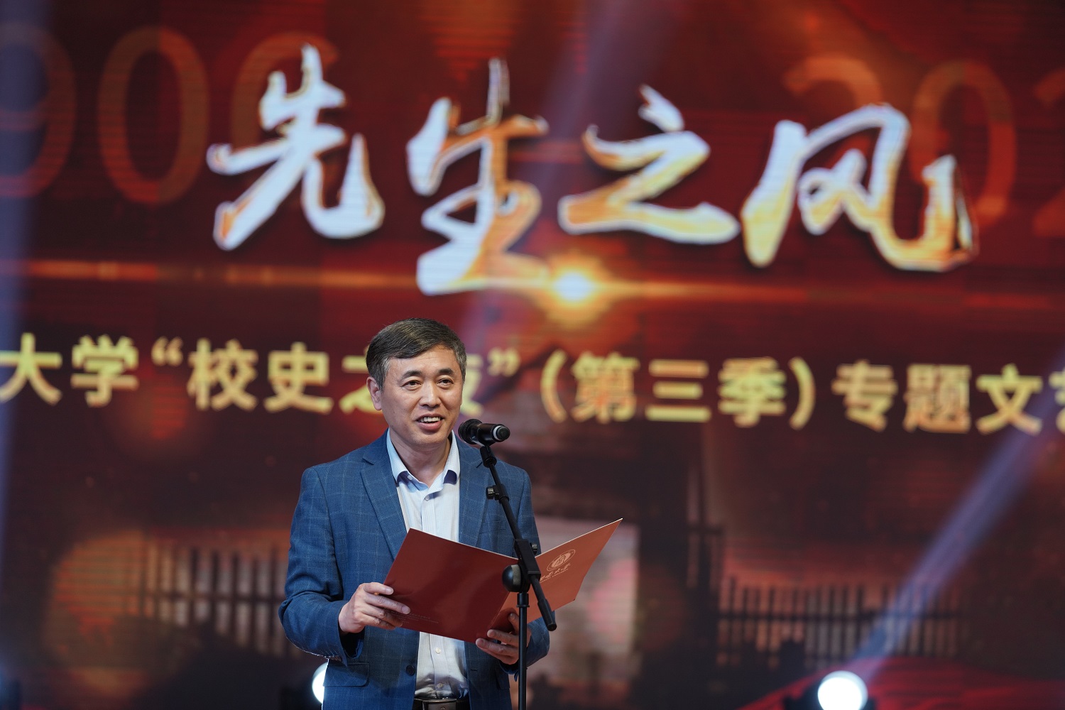 学校党委副书记潘洵出席晚会并致辞,希望各单位围绕立德树人根本任务,深入挖掘好、利用好名师大家、优秀校友资源,使之转化成为学科与科研发展的智慧资源,推动事业改革创新的思想资源,以及学生人格养成的精神资源,为培养担当民族复兴大任的时代新人提供坚强的支撑保障,同时希望广大青年学子认真学习和弘扬前辈先生的精神风范,从他们身上吸取人格力量、精神动力和成长滋养,心怀梦想、砥砺前行,以“舍我其谁”的实际行动,践行“请党放心,强国有我”的铮铮誓言,为建设特色鲜明的世界一流贡献青春力量。