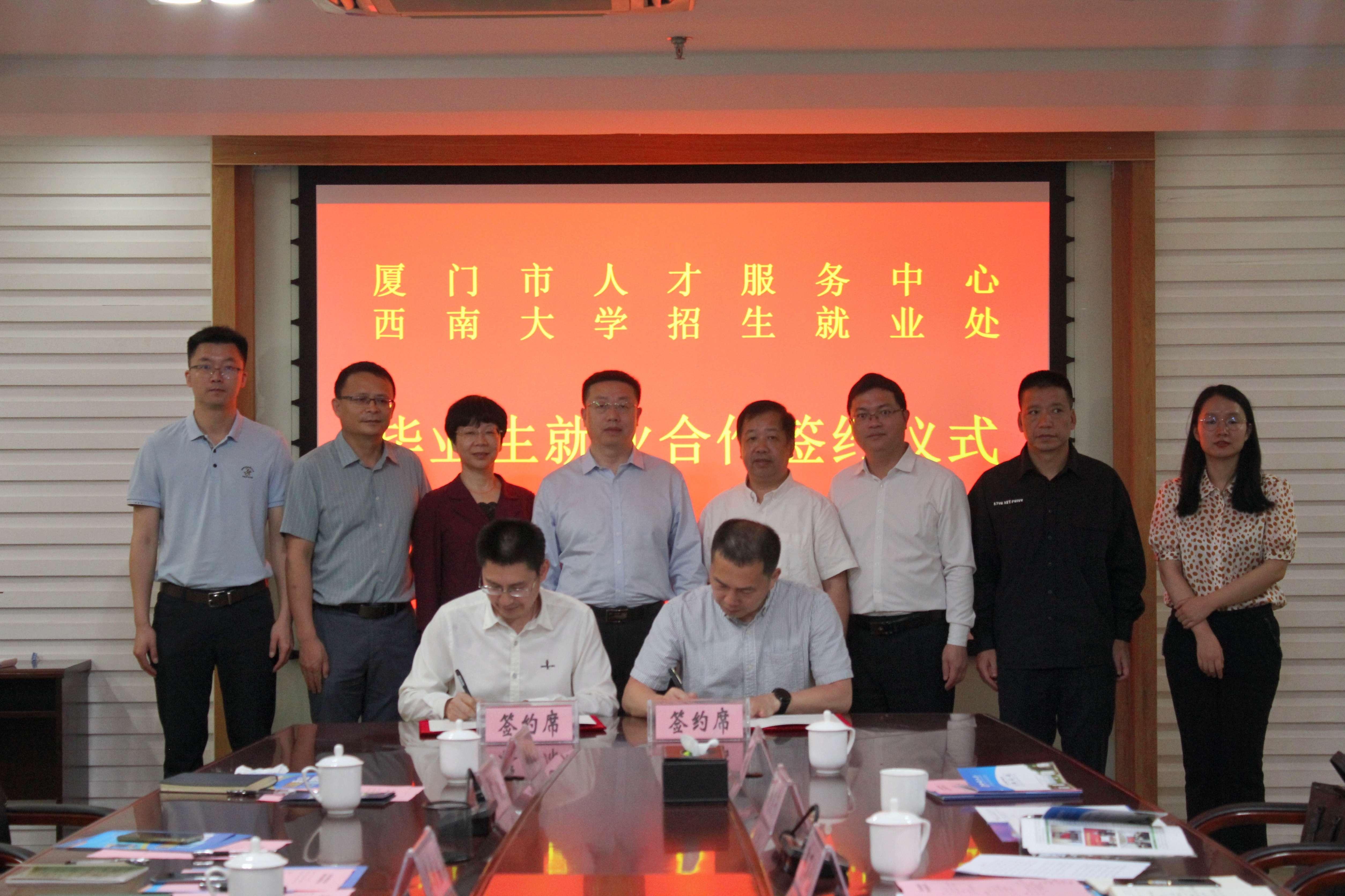 4月17日,夏玉峰一行赴厦门市人才服务中心考察交流。厦门市人才服务中心党总支书记、主任包伟文,党总支副书记、中心副主任陈七三,规划发展部部长陈万化,就业服务部部长陈云,厦门银祥集团有限公司总监陈映红等三家企业代表出席相关活动。双方汇报厦门市产业发展及人才政策、金年会jinnianhuicom毕业生情况,就加强校地合作、精准对接供需交换意见,就进一步增加合作深度、提高合作精准度、拓展合作广度达成共识,并签订合作协议。