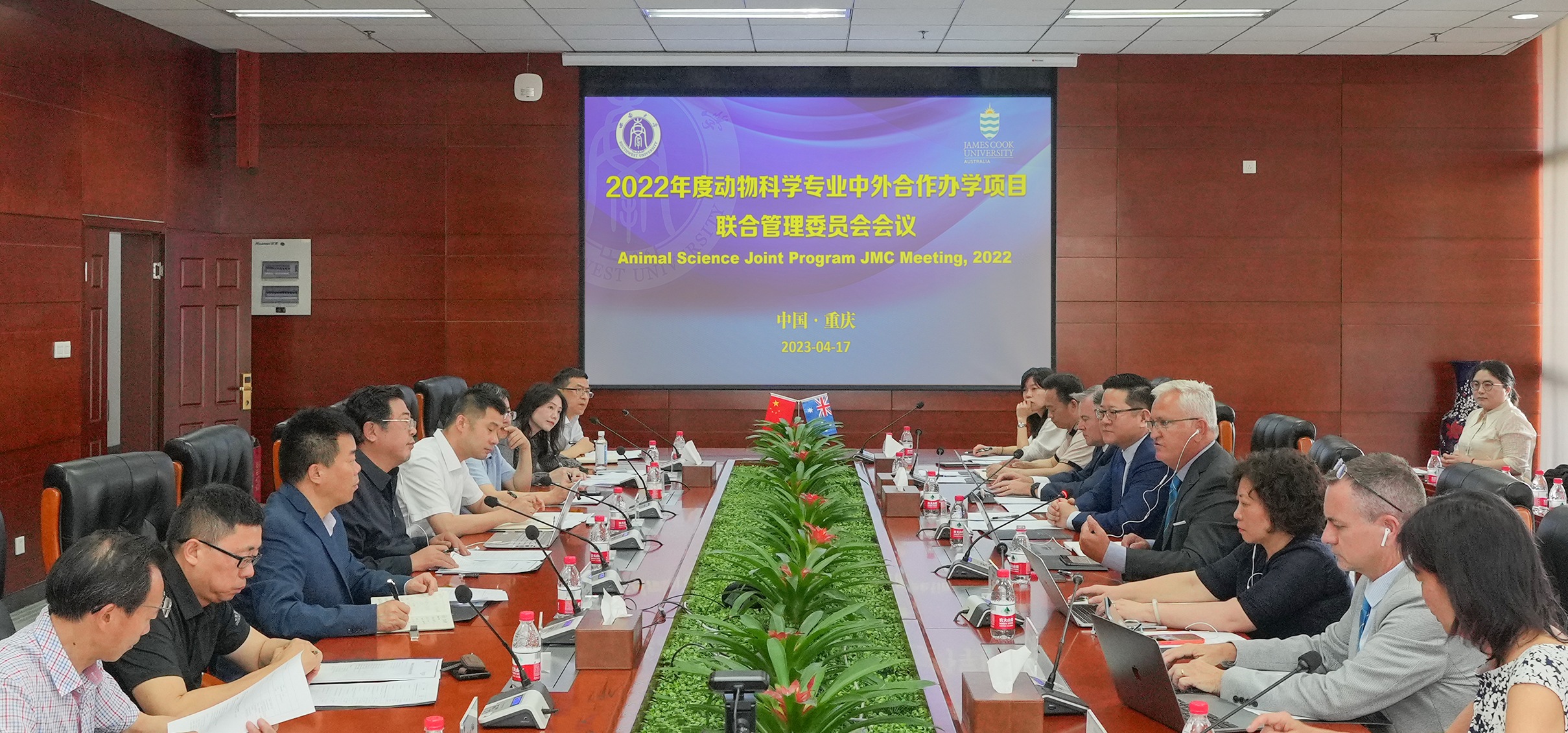 4月17日,2022年度动物科学专业中外合作办学项目联合管理委员会会议在学校召开,副校长崔延强、澳大利亚詹姆斯库克大学常务副校长马尔库斯•莱恩(Marcus Lane),以及双方相关单位负责人出席会议。