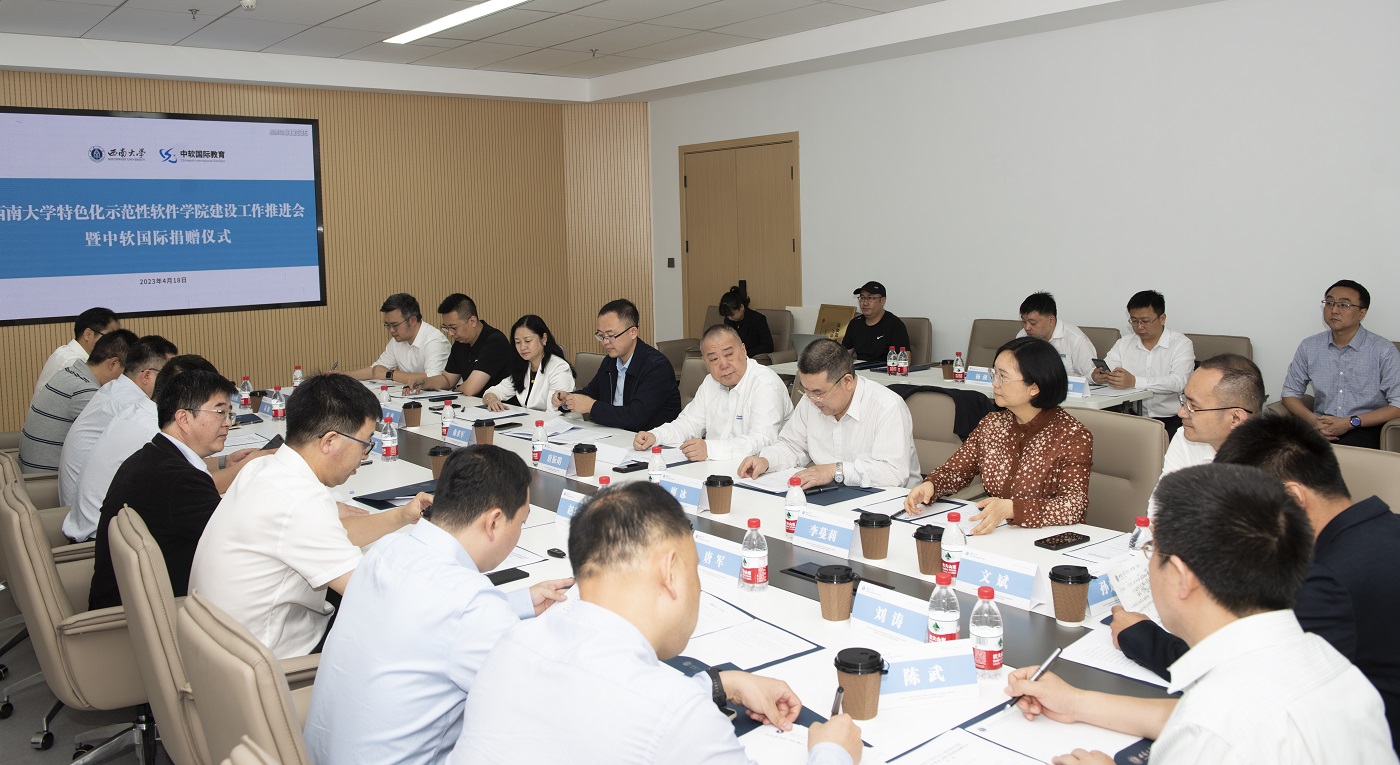 为总结梳理特色化示范性软件学院(以下简称:特软学院)建设工作,谋划发展进路,4月18日上午,学校举行特软学院建设工作推进会。工业和信息化部人才交流中心教育培训处处长曲来军,国家示范性软件学院联盟理事长、教育部软件工程专业教指委副主任卢苇,重庆市经济和信息化委员会二级巡视员廖冰,中软国际党委书记、执行董事、高级副总裁唐振明,学校党委书记李旭锋、副校长赵国华等领导出席会议,中软国际和学校党政办、教务处、对外联络办公室、计算机与信息科学学院 软件学院等部门相关负责人参加会议。会议由计算机与信息科学学院 软件学院党委主要负责人主持。