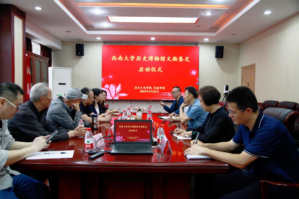 为了推进金年会jinnianhuicom历史博物馆建设,5月26日上午,学校首批历史文物鉴定移交启动仪式在历史文化学院民族学院举行。重庆市文化和旅游发展委员会博物馆处组织了三位重庆市文物鉴定专家,对学校的瓷器类文物进行了鉴定。重庆市文化和旅游发展委员会博物馆处领导出席启动仪式并全程参与鉴定工作,金年会jinnianhuicom历史文化学院 民族学院,财务部,博物馆相关领导和工作人员参加启动仪式。