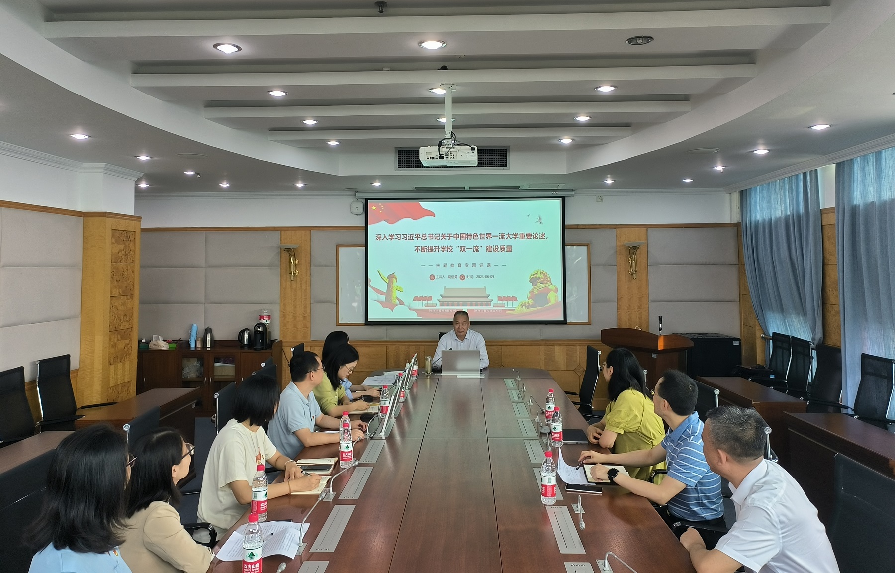 葛信勇从“深刻认识中国特色世界一流大学建设的战略定位”“深刻把握中国特色世界一流大学建设的丰富内涵”“深刻践行中国特色世界一流大学建设的重要使命”三个方面进行阐述交流,带领大家对教育在党和国家事业中基础性、先导性、全局性地位及“双一流”建设在建设高等教育强国中的重大意义进行了再学习、再认识。他强调,建设中国特色世界一流大学要以党的全面领导为根本保证、以扎根中国大地办大学为根本遵循、以立德树人为根本任务、以服务国家重大战略需求为根本导向,并对深入推进学校“双一流”建设质量提升作出了精细部署。